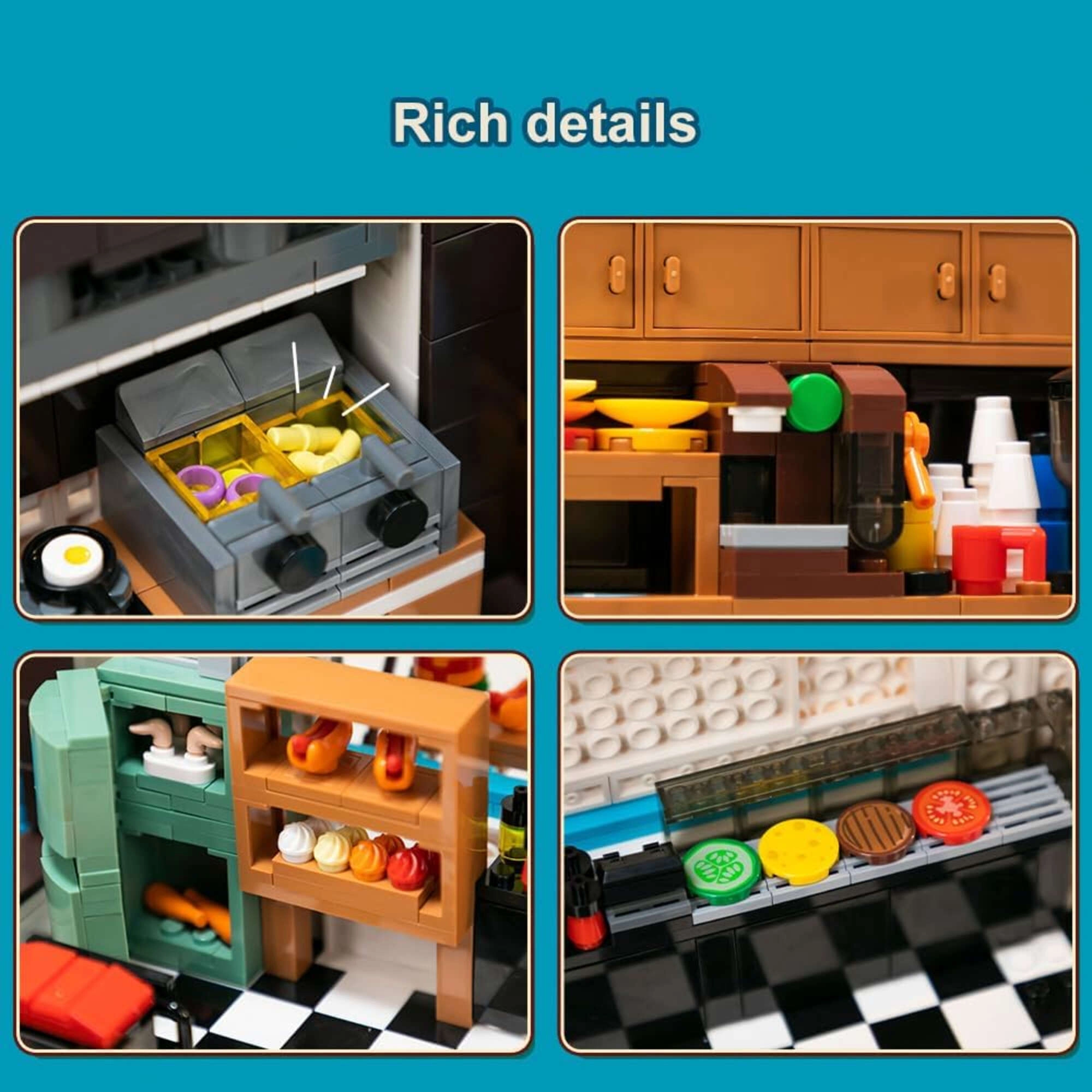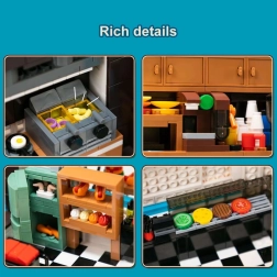 Descubre el encanto de las calles llenas de aromas y luces con el elaborado modelo de este camión de comida retro. El techo se abre fácilmente y revela una cocina auténtica con placa, freidora, horno y utensilios. Gracias a los detalles impresos, el aspecto se mantiene limpio e impactante a largo plazo.