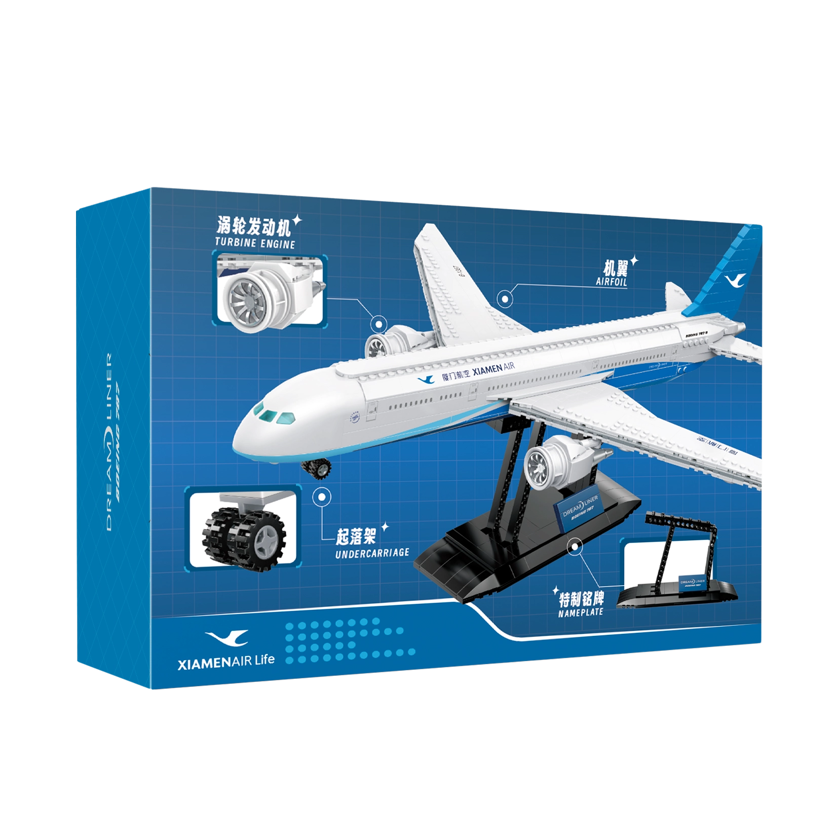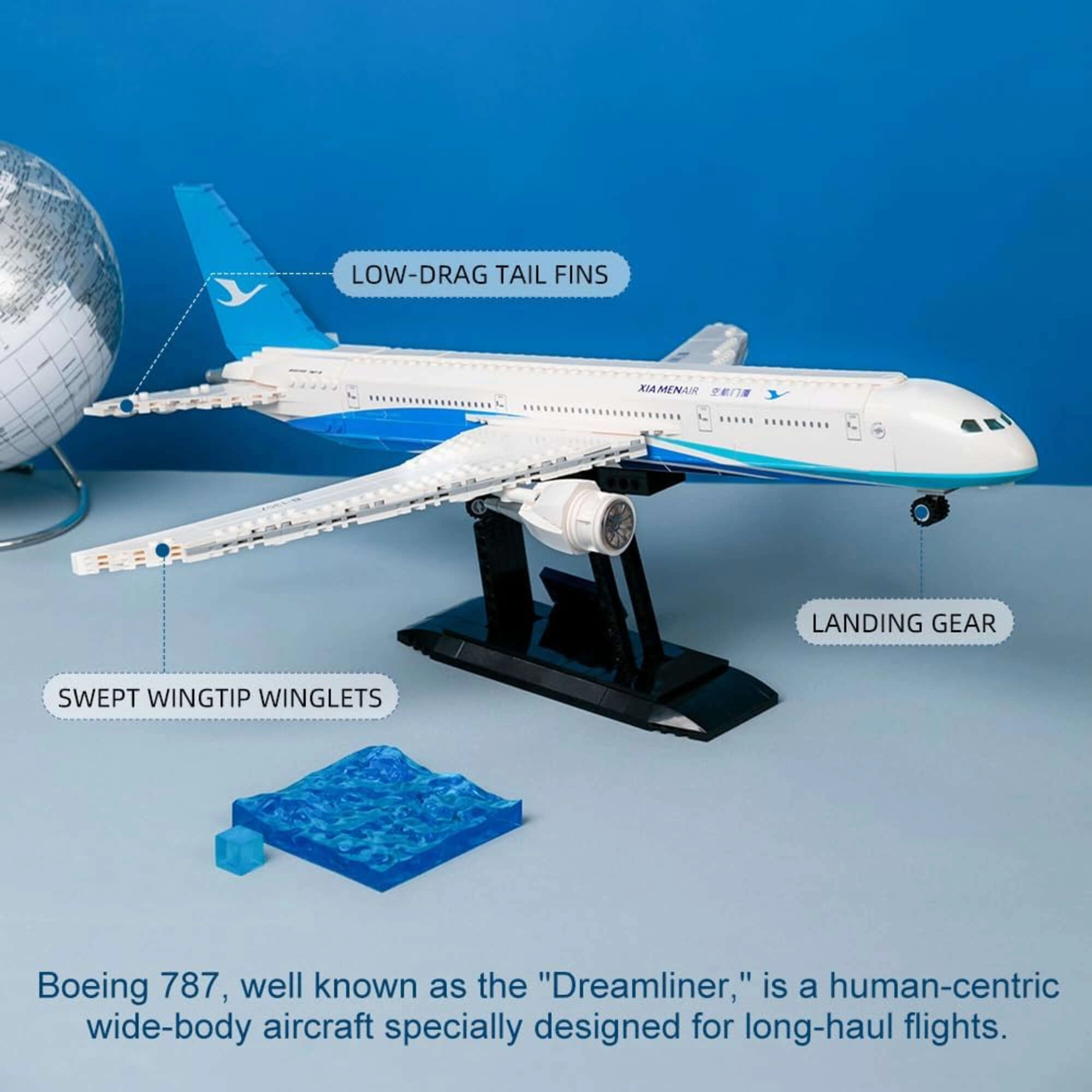 Este set realista trae un icono de la aviación moderna: el BOEING 787 Dreamliner, en una pieza de exhibición cautivadora de 55 cm de largo. Los elementos meticulosamente elaborados, incluidos los motores turborreactores, las superficies aerodinámicas y el morro detallado, refuerzan su aspecto auténtico. Los detalles impresos directamente en las piezas garantizan una estética limpia y elegante a largo plazo sin pegatinas que se despeguen.