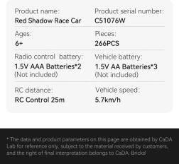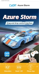El set de construcción CaDA AZURE STORM combina la creatividad de construcción con la conducción RC rápida. Tras el montaje, obtendrás un coche de carreras detallado con forma aerodinámica, cabina transparente y adhesivos deportivos, listo para competiciones dinámicas en casa y al aire libre. El control es intuitivo y estable gracias a la tecnología 2,4 GHz y Bluetooth.