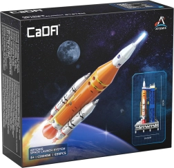 El modelo de CaDA inspirado en el programa NASA Artemis representa fielmente la etapa central naranja, los propulsores auxiliares blancos y la torre de servicio con detalles estructurales. No faltan los motores realistas, la imitación de encendido y el emblema de la NASA, con los que destacará en cualquier estantería.
