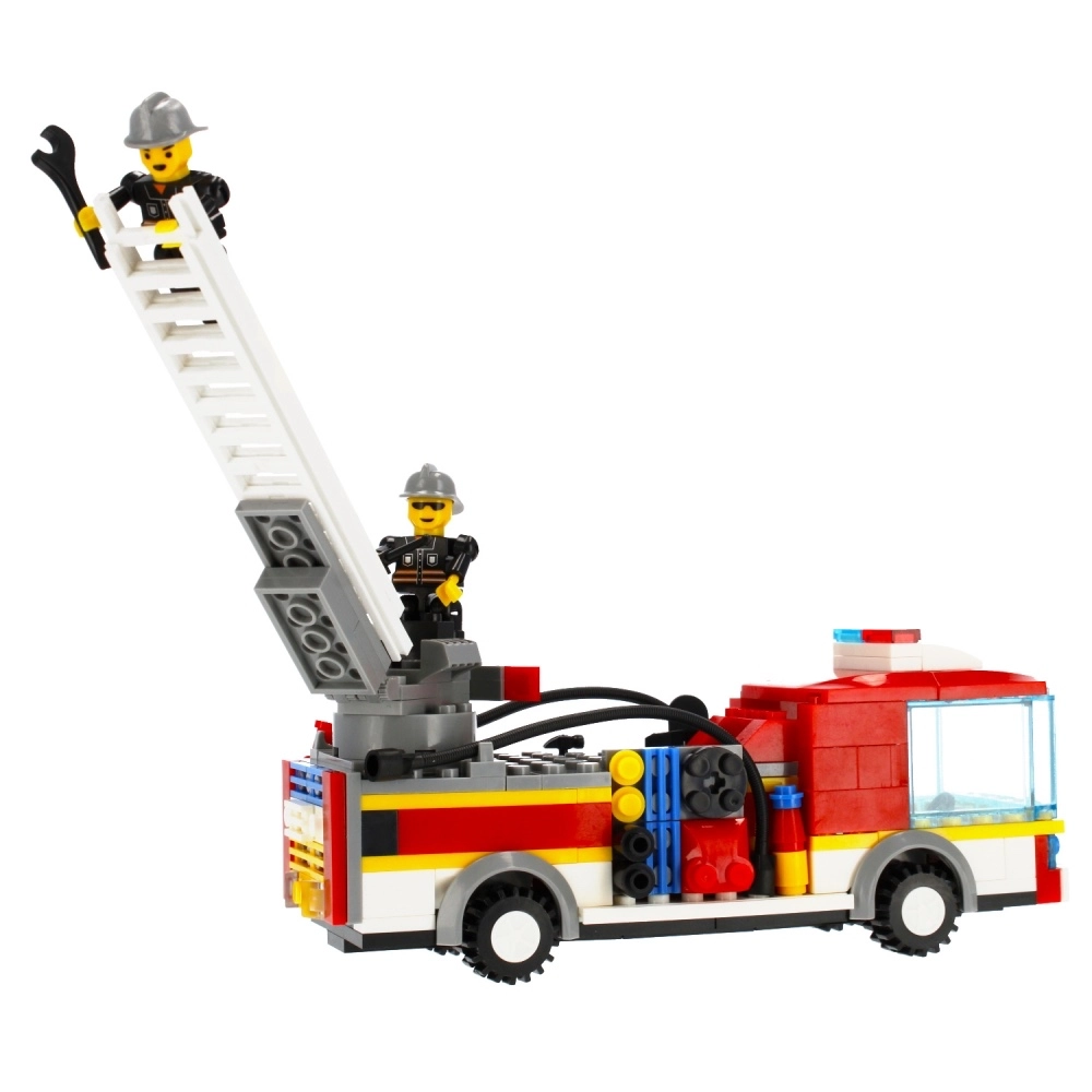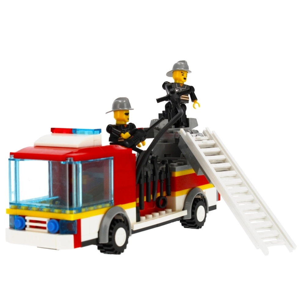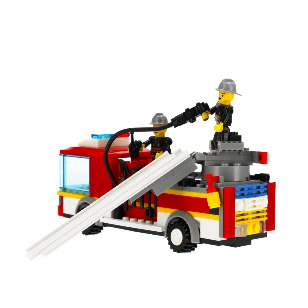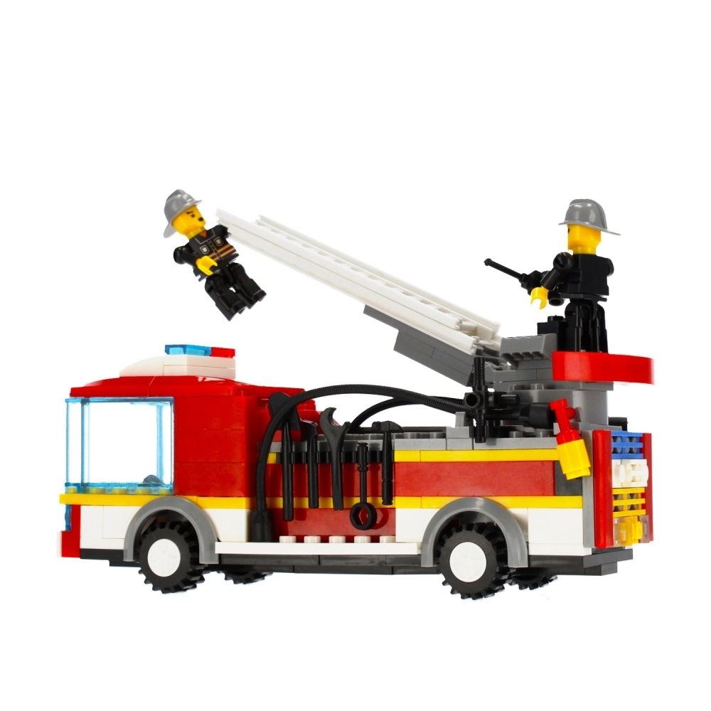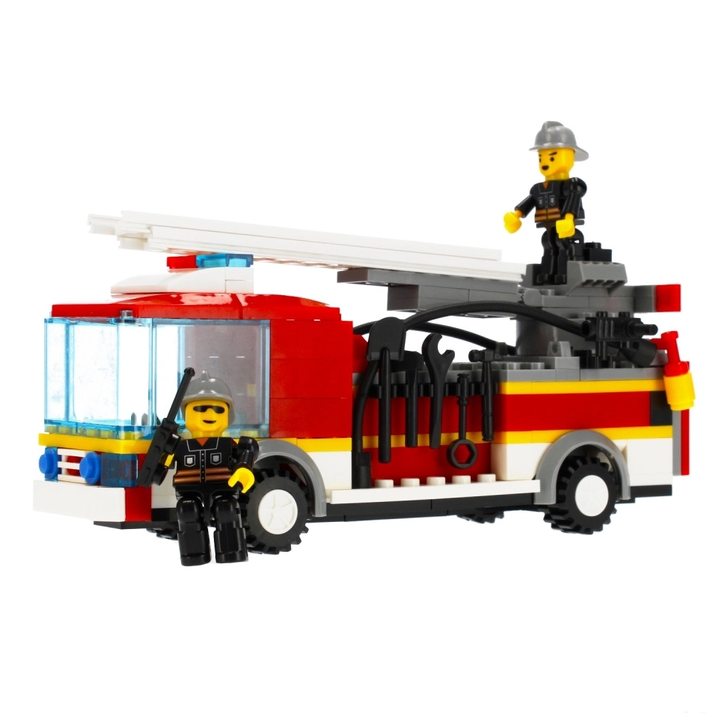 - Set de construcción de camión de bomberos, 2 figuras de bombero, accesorios, manual de montaje