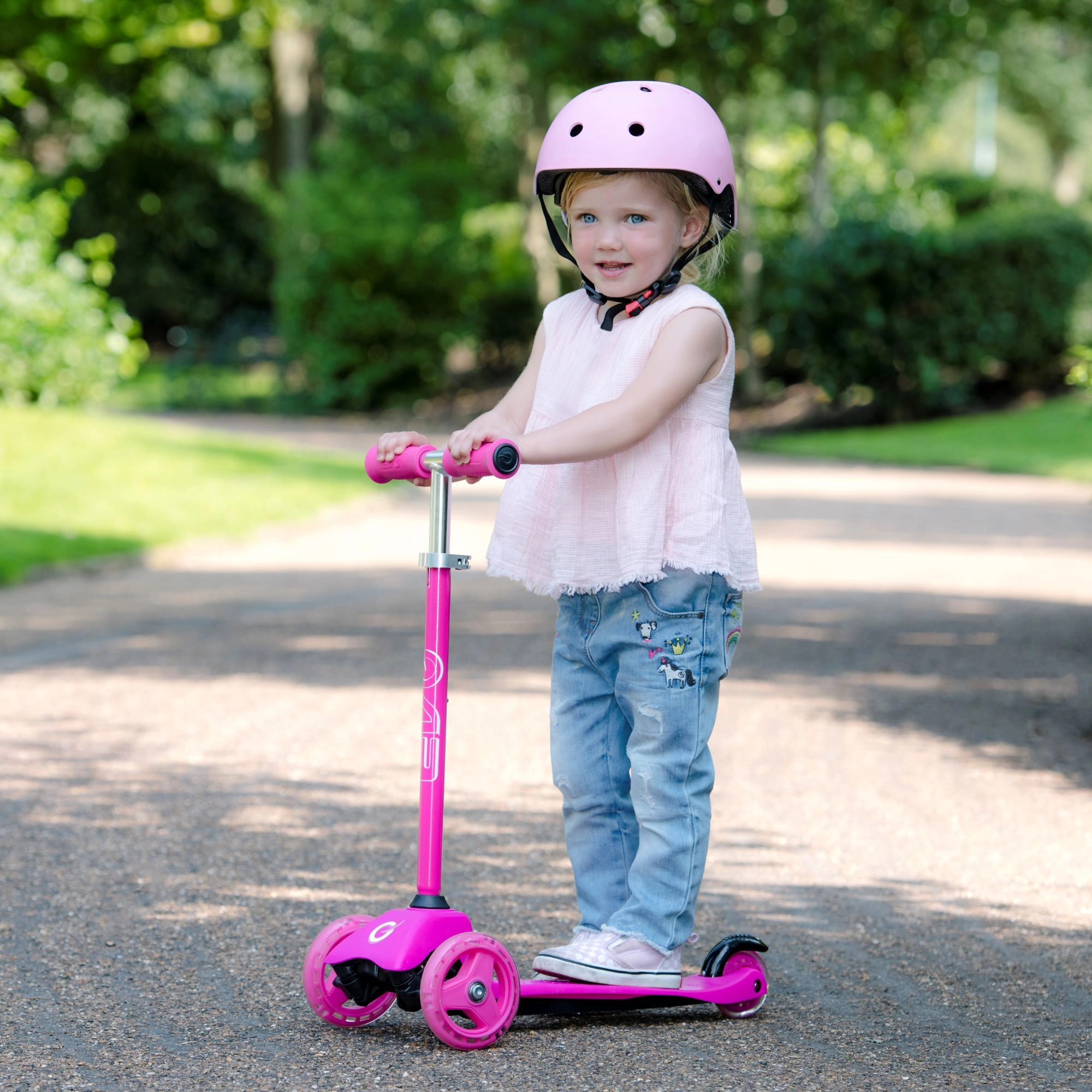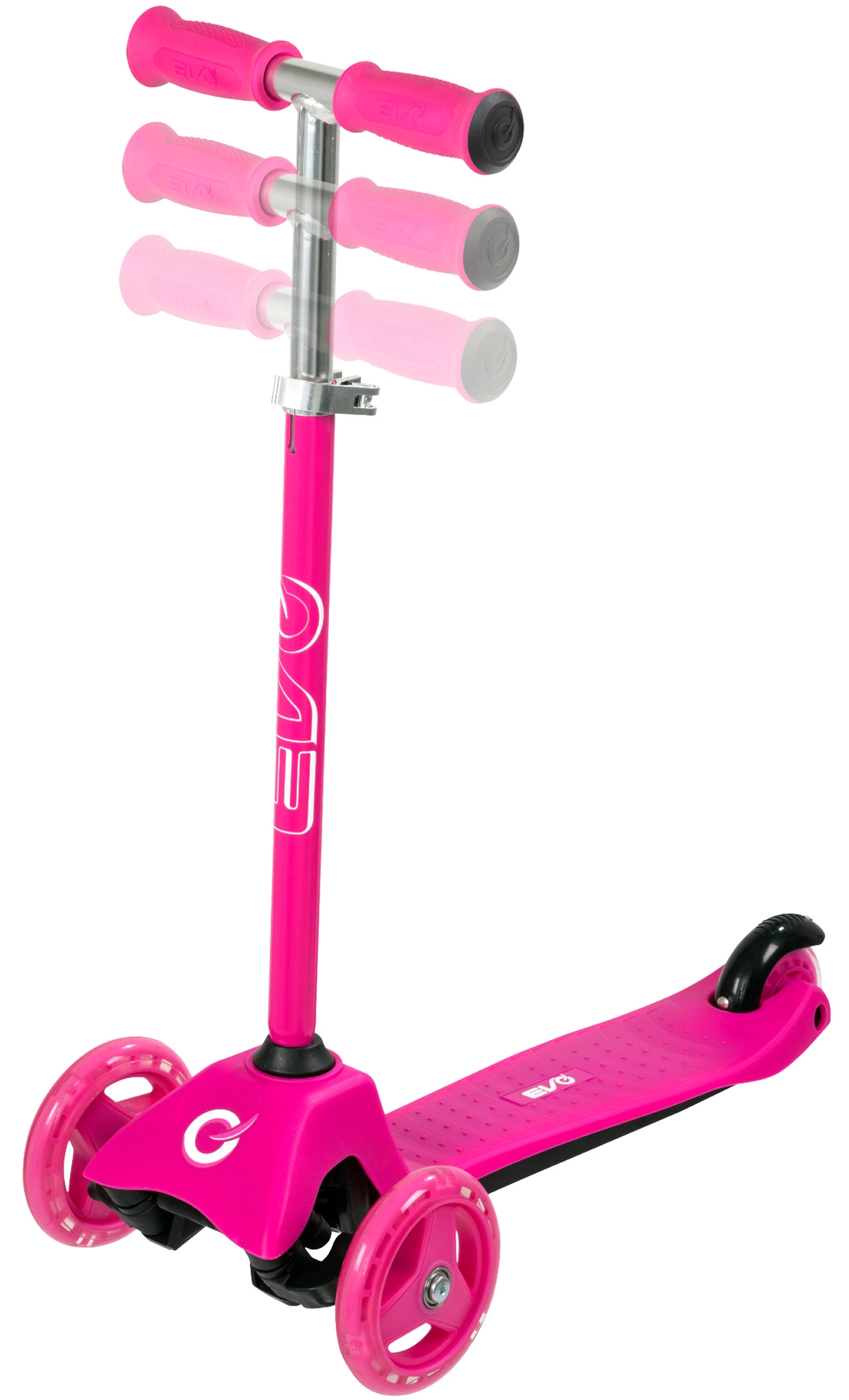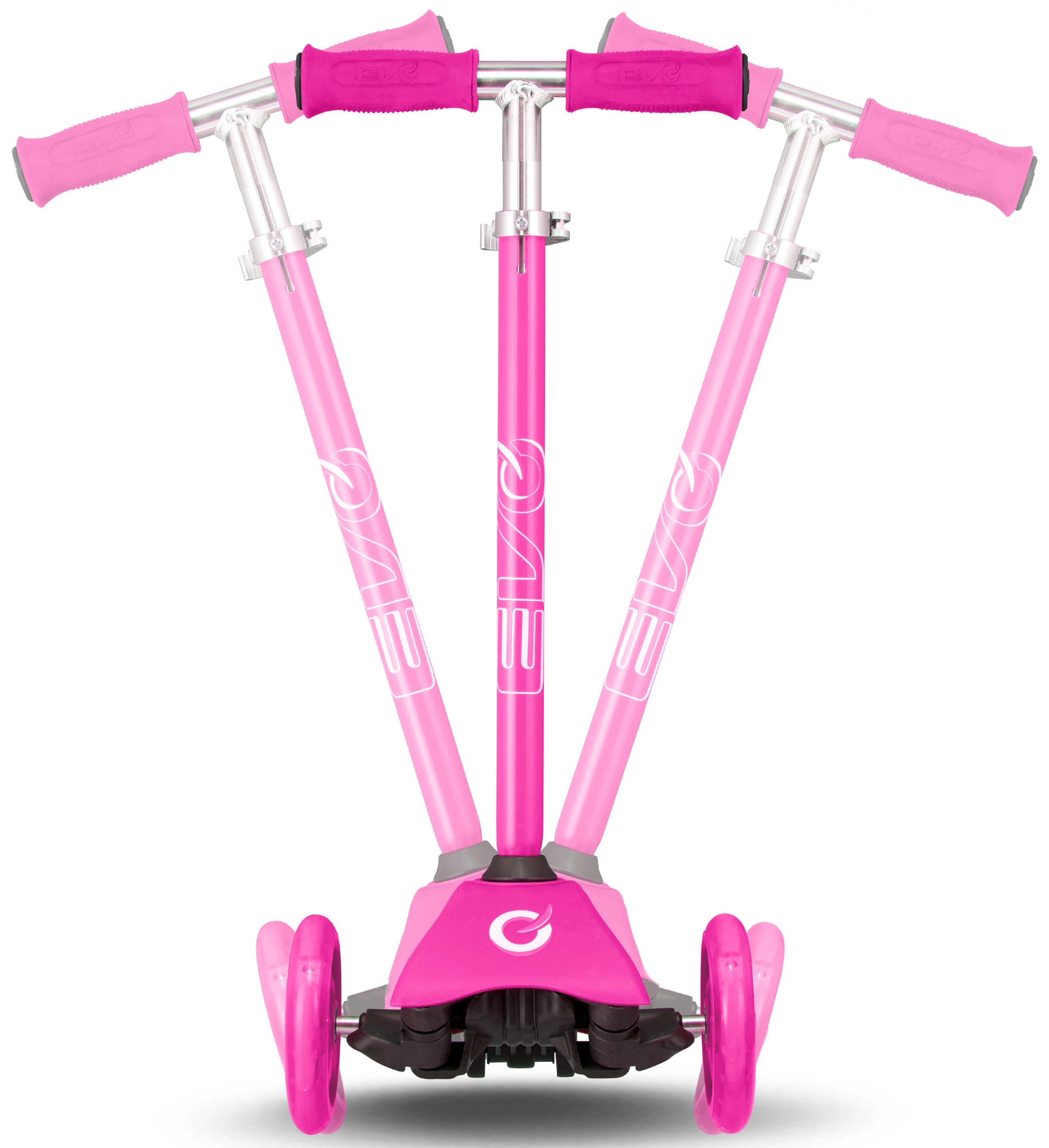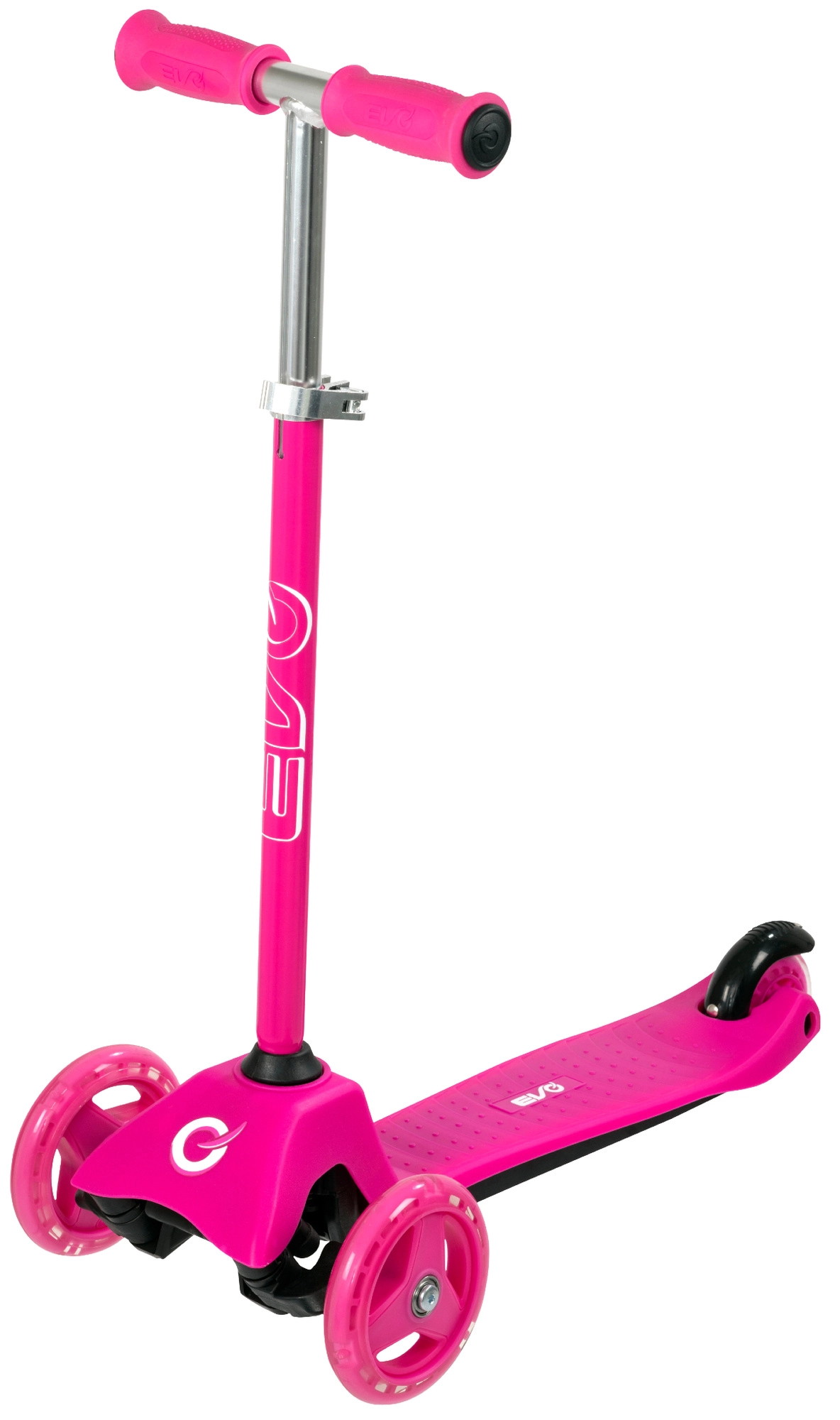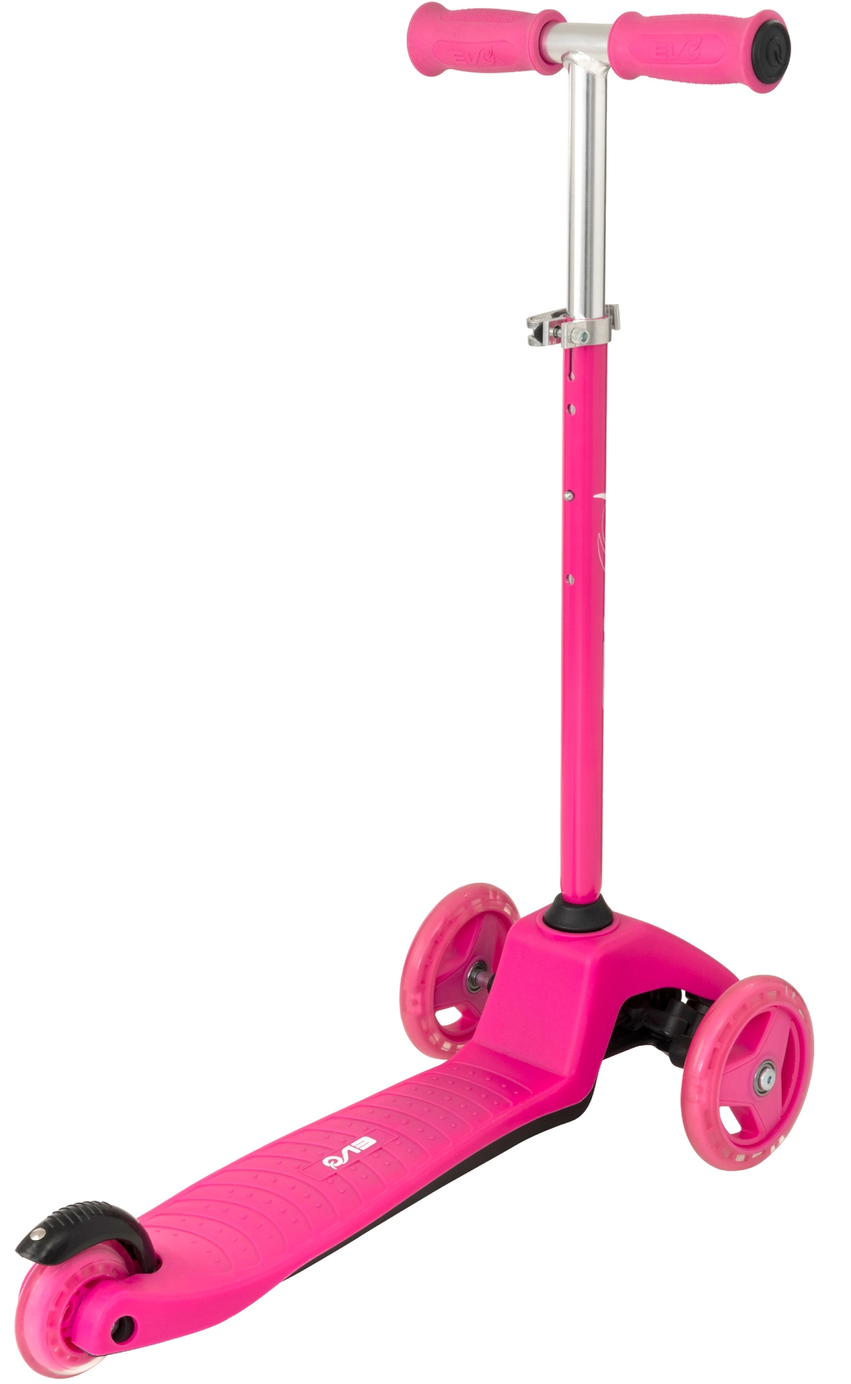 El patinete infantil 2 en 1 EVO en color rosa crece con tu hijo: en un momento lo conviertes de correpasillos con asiento en un patinete/triciclo estable. Gracias a las dos ruedas delanteras, la base baja y la dirección por inclinación ofrece excelente estabilidad, manejo sencillo y frenado seguro con el guardabarros trasero. El manillar regulable en altura, las ruedas silenciosas con rodamientos ABEC-5 y la plataforma antideslizante garantizan un paseo cómodo y divertido para los más pequeños y también para niños mayores.