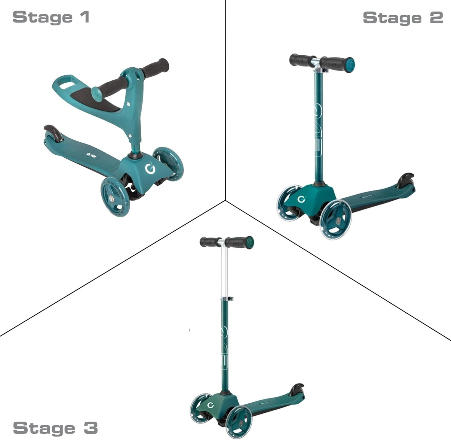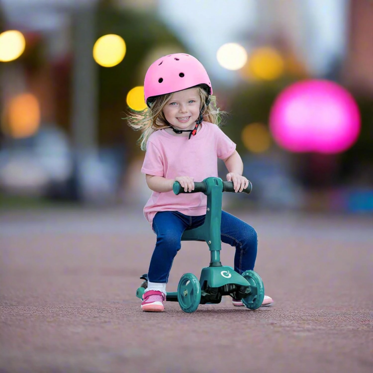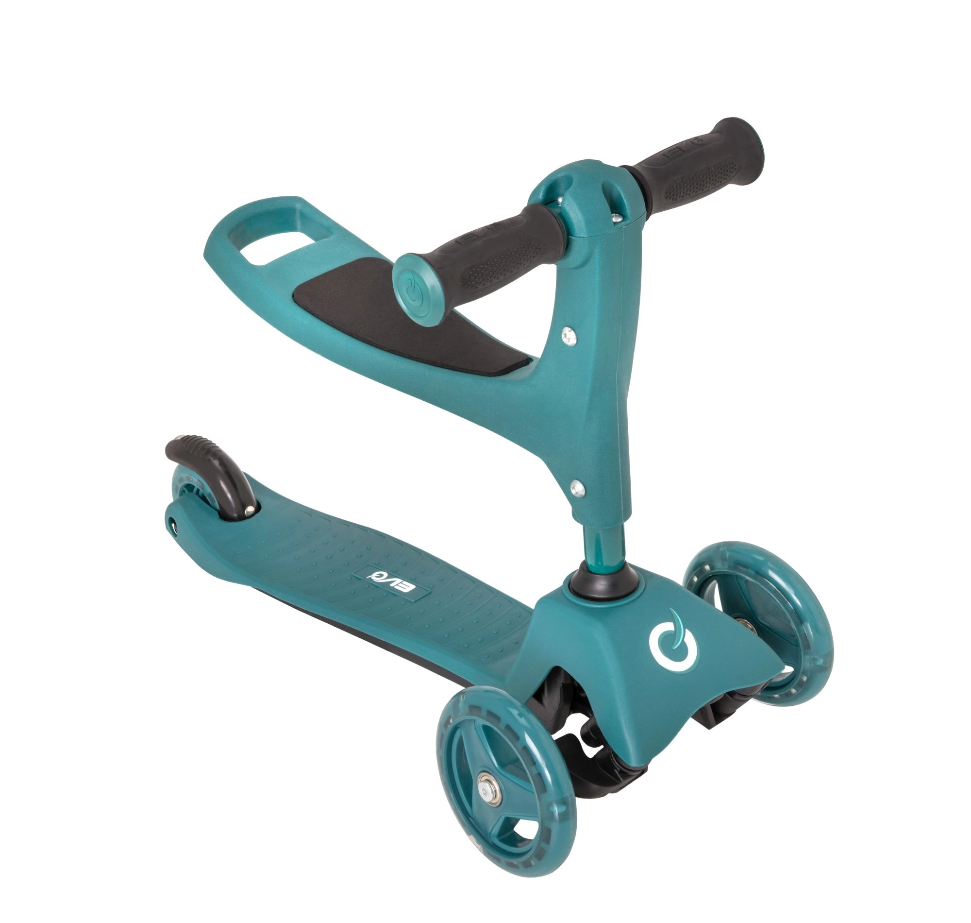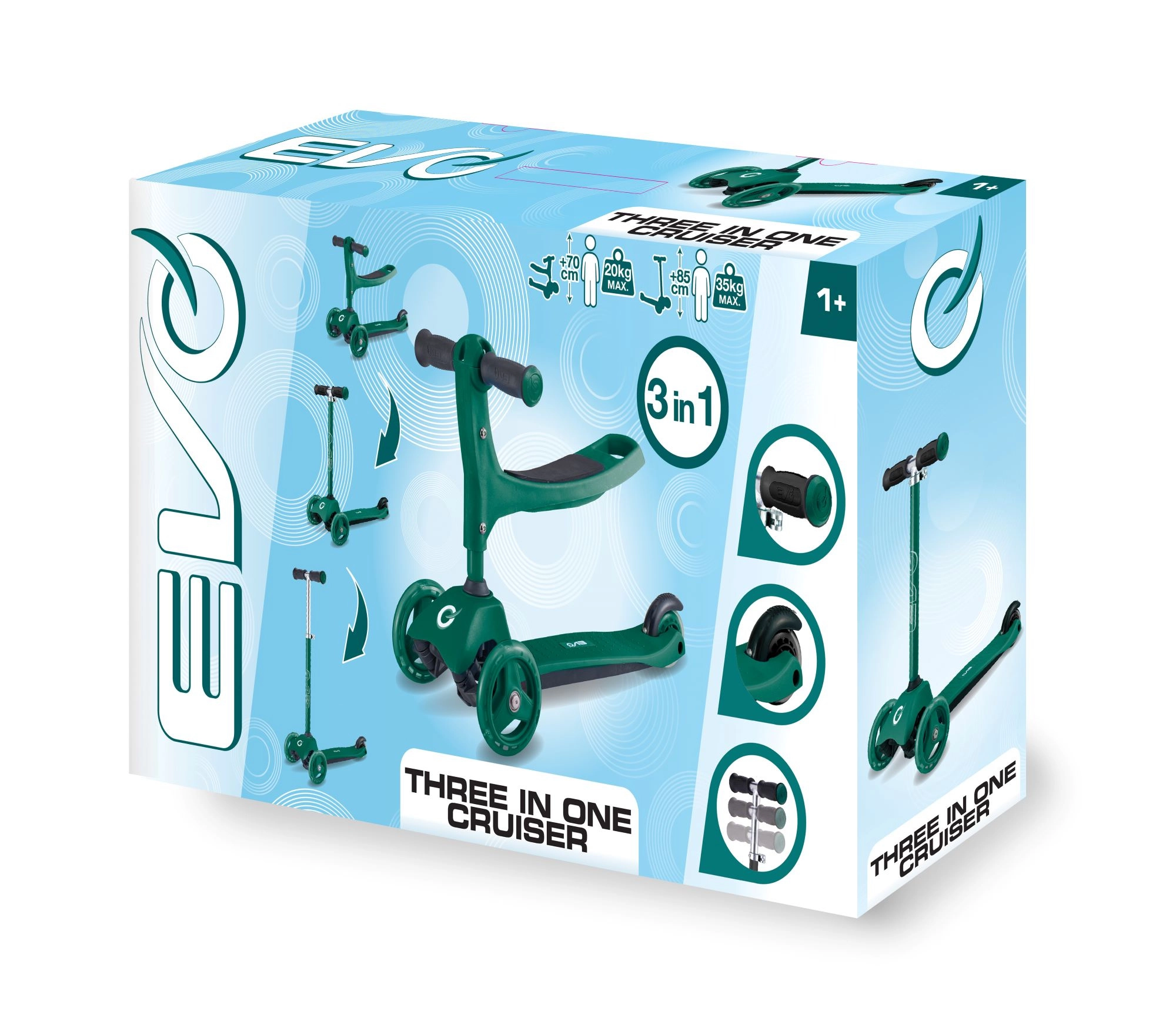 Brinda a los niños un paseo estable y divertido con el patinete 2 en 1 de la marca EVO: combina correpasillos y patinete en uno. Gracias a sus tres ruedas, la base ancha y la altura ajustable del manillar, fomenta el equilibrio y la coordinación desde los 1 año. Sus ruedas delanteras dobles, rodamientos silenciosos ABEC-5 y freno de pie en el guardabarros trasero garantizan una conducción segura y fluida.