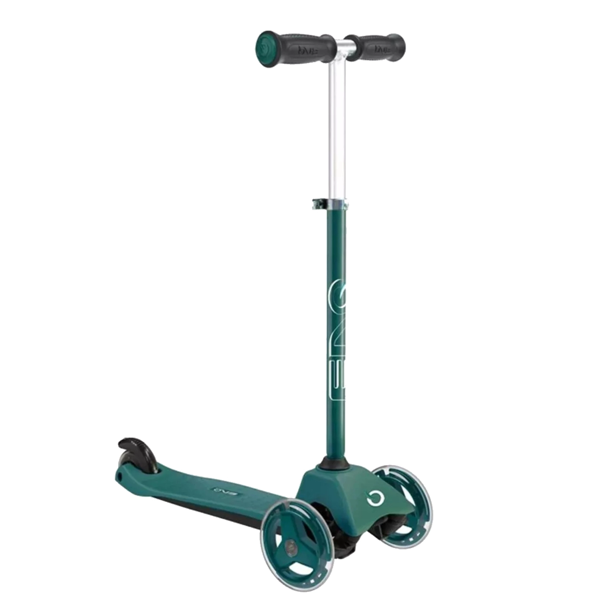 La estabilidad y seguridad están garantizadas por dos grandes ruedas delanteras y una rueda trasera más pequeña con freno de pie. El movimiento silencioso y fluido lo aportan los rodamientos ABEC-5, mientras que los puños de TPE de goma aseguran un agarre firme sin deslizamientos. Su bajo peso de 2,75 kg facilita el transporte y el uso diario.