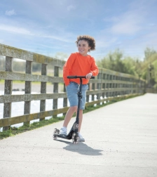 Ajuste fácil a la altura del niño. Los puños ergonómicos de TPR garantizan un agarre cómodo y antideslizante incluso en trayectos más largos.