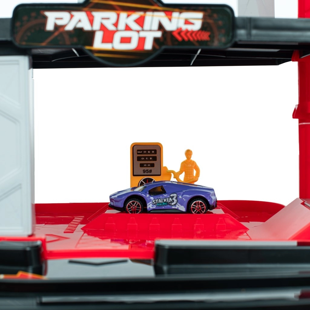 - Aparcamiento con ascensor y rampas, gasolinera, helipuerto, 4 cochecitos de metal, helicóptero