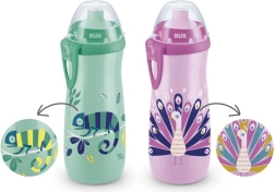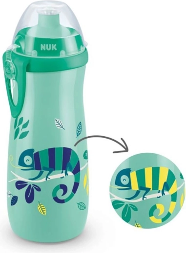 La botella deportiva infantil NUK Sports Cup Chameleon de 450 ml, ligera y resistente, es ideal para niños activos a partir de 3 años. Ofrece una boquilla push-pull suave de silicona para beber con comodidad, una tapa higiénica para mantener limpia la boquilla y una estructura resistente sin BPA. Gracias al cuello ancho FIRST CHOICE se llena y se limpia fácilmente, y el práctico clip para colgar permite llevar la botella siempre a mano.