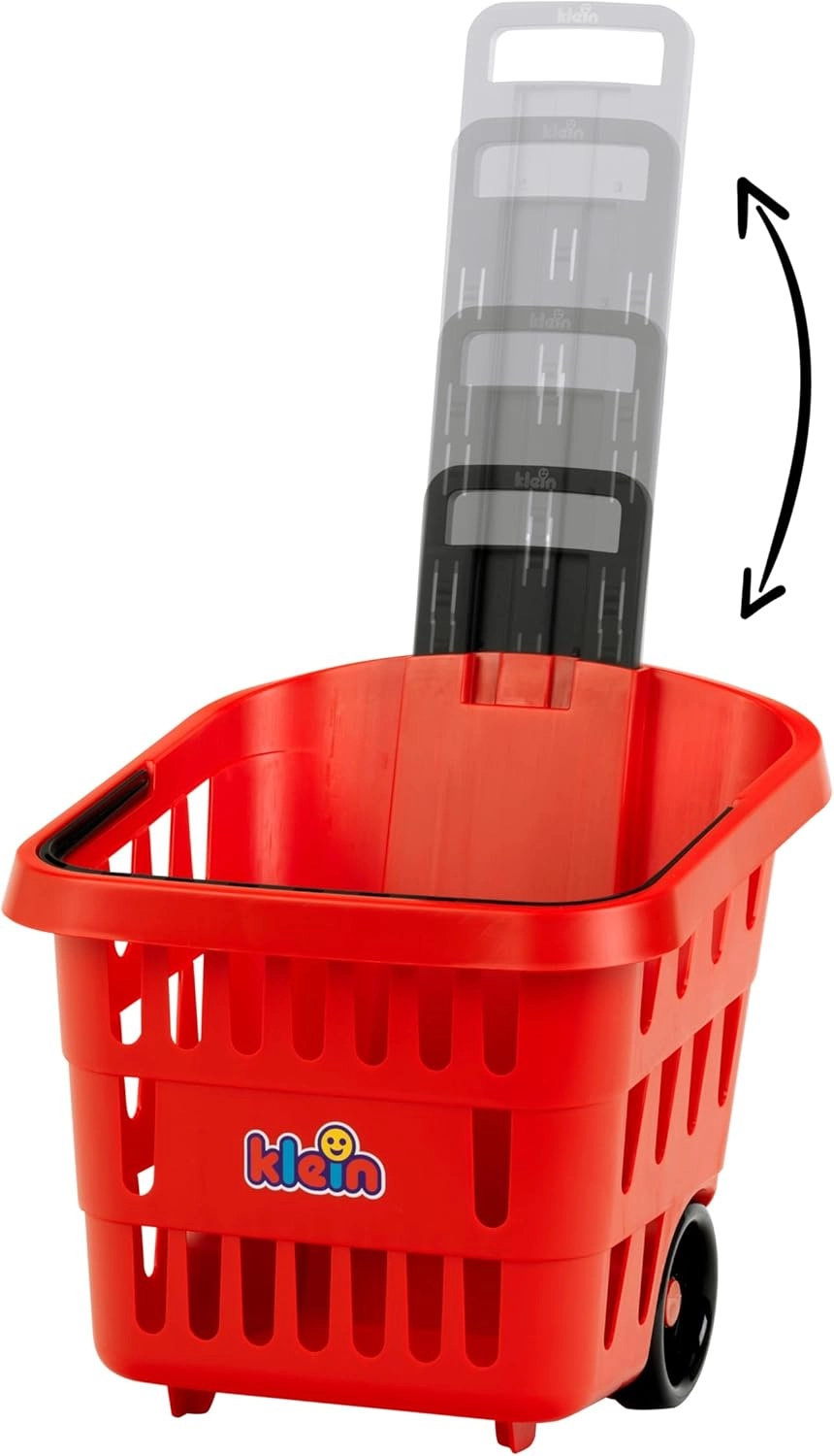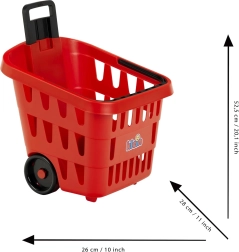 Carrito de la compra infantil realista en color rojo de la marca THEO KLEIN que ofrece una gran diversión al jugar a las tiendas. Gracias al plástico resistente, al mango cómodo y a las ruedas estables, el carrito es seguro, práctico e ideal para desarrollar la imaginación, las habilidades sociales y la motricidad fina de niños a partir de 3 años.