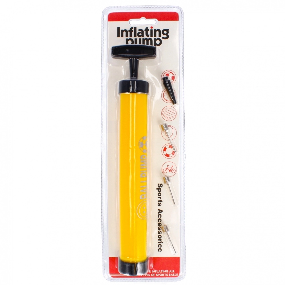 Práctica bomba manual para pelotas que no puede faltar en ningún hogar. Gracias a su diseño compacto y a las agujas incluidas, tus pelotas estarán siempre perfectamente infladas. Uso universal, manejo sencillo y fácil de transportar. El paquete incluye 4 agujas. Colores variados, precio por 1 unidad.