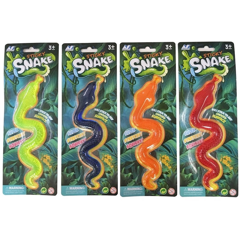 Adorable y súper pegajosa serpiente para diversión sin fin de los niños. Se estira muy bien, se adhiere a superficies lisas y ofrece muchos momentos divertidos. Disponible en varios colores, el precio es por 1 unidad.