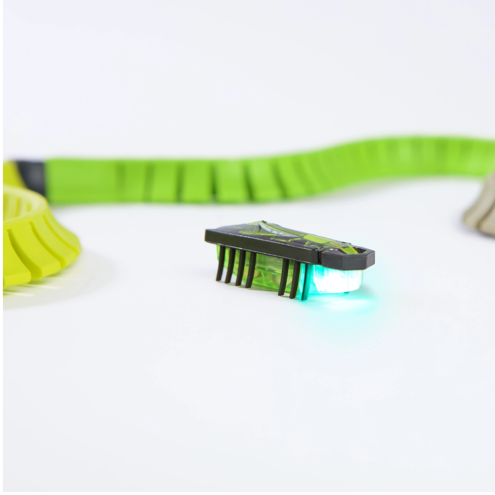 Las piezas de unión permiten un encaje rápido y una guía segura del escarabajo por la pista. Los segmentos son flexibles y plegables, por lo que puedes construir óvalos, curvas y laberintos. El set se puede ampliar con más pistas y escarabajos HEXBUG para aún más acción.