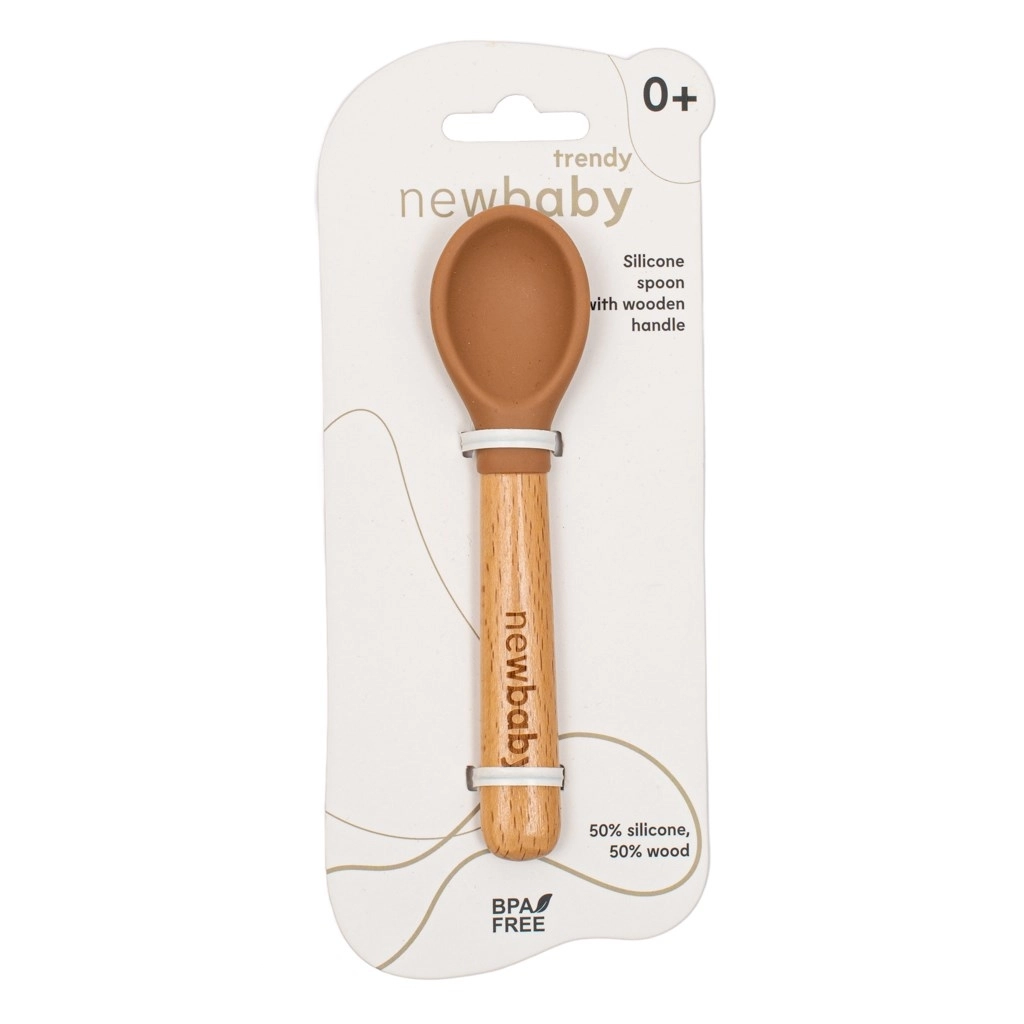 La práctica y elegante cucharita infantil NEW BABY combina madera natural y silicona suave sin BPA para una alimentación delicada desde una edad temprana. El mango de madera ergonómico se adapta perfectamente a la mano, mientras que la parte de silicona suave es delicada con las encías sensibles. Incluye un estuche higiénico para un almacenamiento seguro en casa y durante los viajes.
