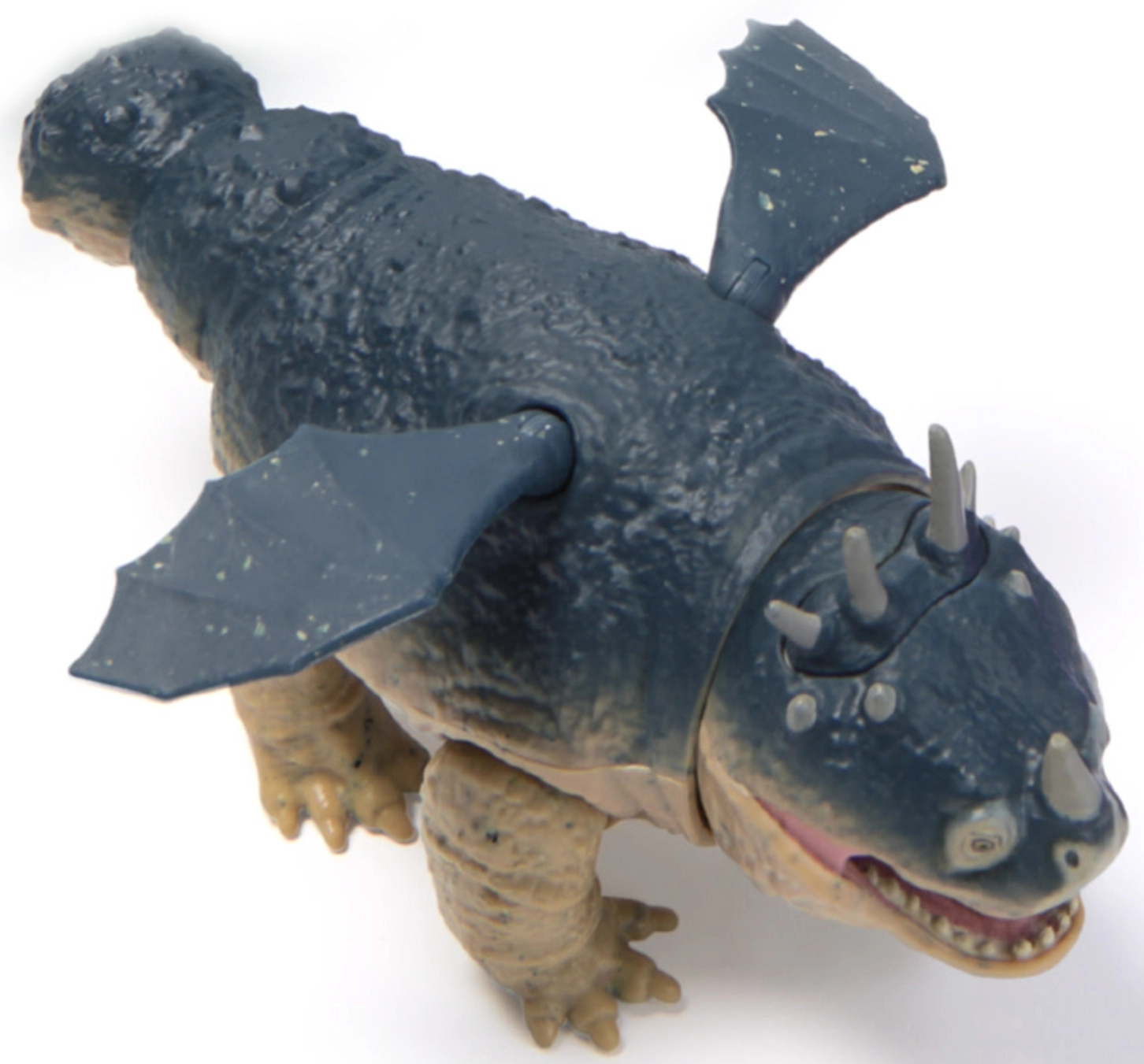 La textura detallada de escamas “de piedra”, los cuernos y la boca abierta con colmillos recrean fielmente el mundo de CÓMO ENTRENAR A TU DRAGÓN.