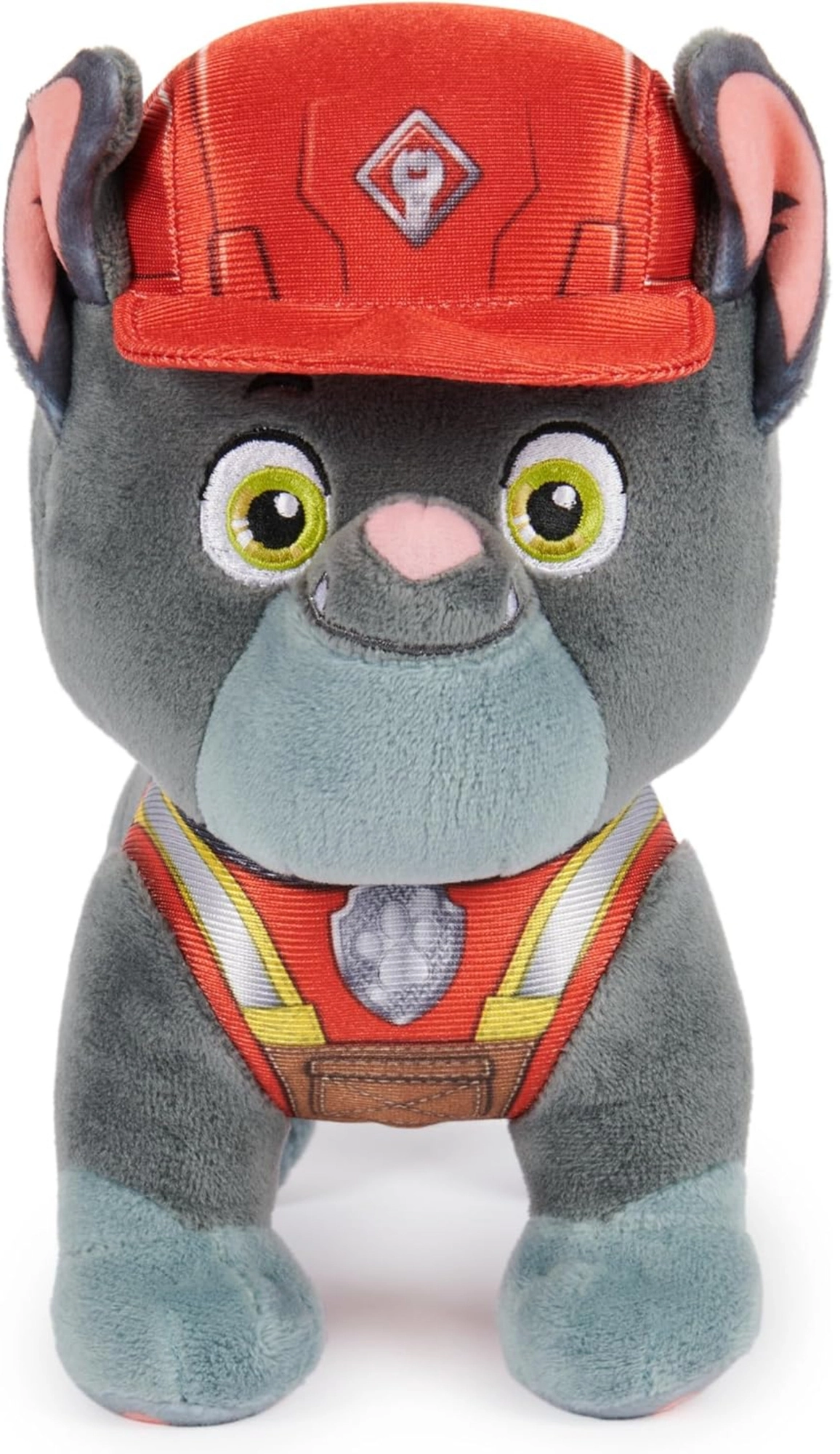 El casco rojo, el chaleco de construcción y los colores precisos reproducen fielmente al personaje de la serie PAW Patrol: Rubble & Crew.