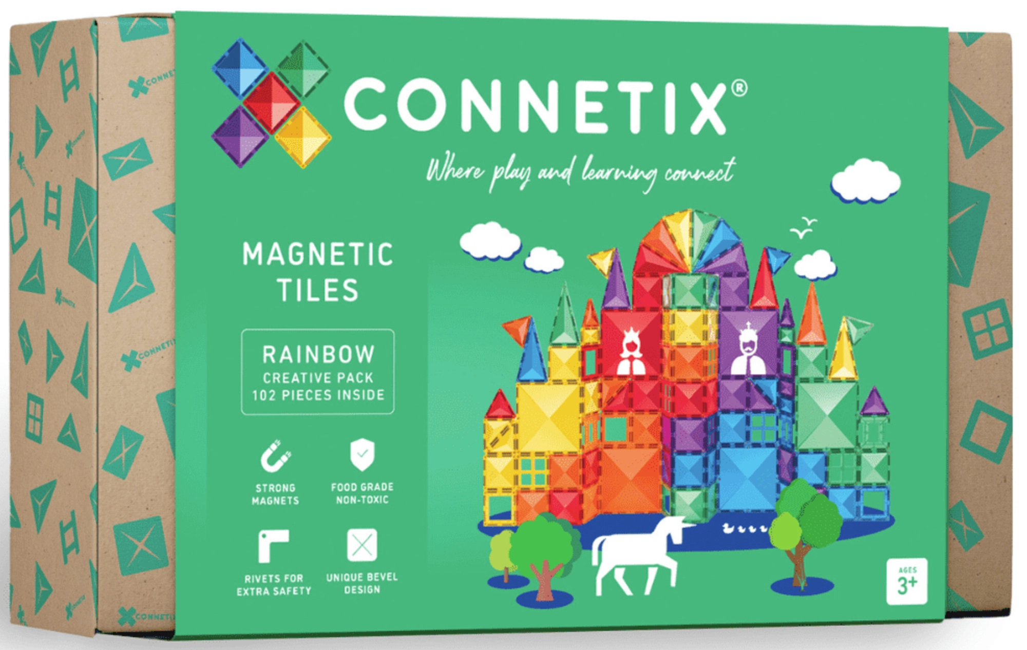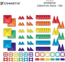 El CONNETIX Rainbow Creative Pack ofrece a los niños una forma lúdica de descubrir la geometría, el equilibrio y los principios del magnetismo. Las piezas de colores translúcidos en varias formas se encajan con fuerza gracias a sus imanes y permiten construir modelos 2D y 3D. Ideal para jugar en casa, guarderías, Montessori y terapia sensorial.
