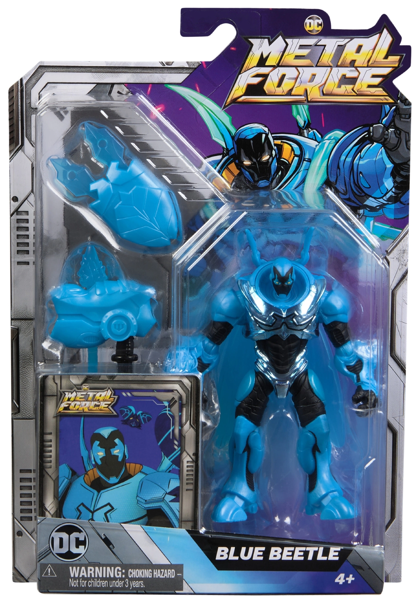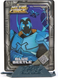 En el paquete encontrarás accesorios temáticos: escudos, un arma y alas que potencian el juego imaginativo. También incluye una tarjeta del personaje y una base para una exhibición con estilo. La figura está fabricada bajo licencia oficial de DC y reproduce fielmente el aspecto de BLUE BEETLE.