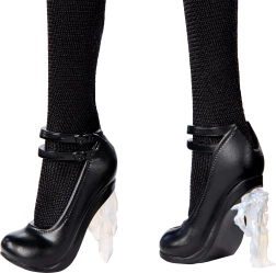 Los accesorios elaborados, como el cinturón plateado, los pendientes y los zapatos de salón con tacones cristalinos, subrayan el estilo gótico y convierten a la muñeca en una pieza destacada para cualquier colección. Gracias a sus brazos y piernas articulados, adopta fácilmente diversas poses: ideal para fotografía y exposición.