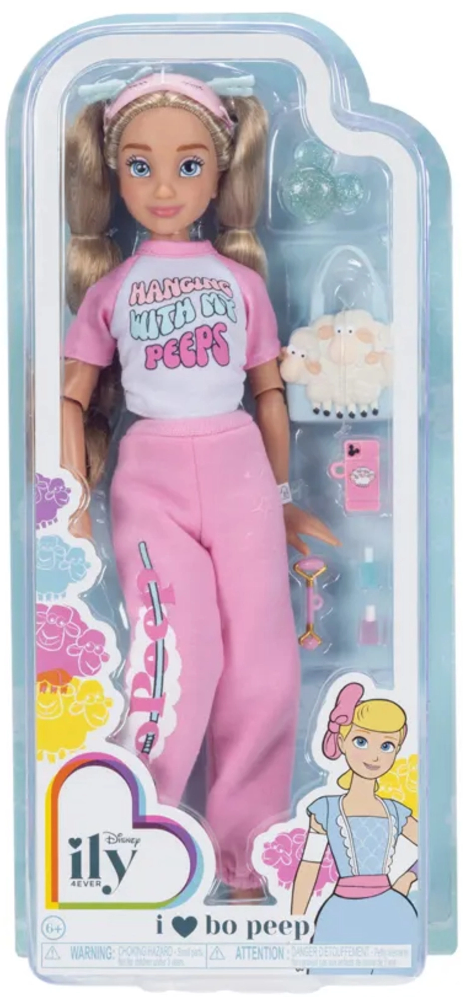 La elegante muñeca Disney ILY 4Ever inspirada en BO PEEP ofrece un look moderno de loungewear, 13 articulaciones móviles y más de 10 accesorios temáticos para un juego creativo sin fin. Con largas trenzas rubias, un práctico bolso con forma de ovejita y un set de SPA en casa, es ideal para niños que aman la moda, el estilismo y las historias imaginativas.
