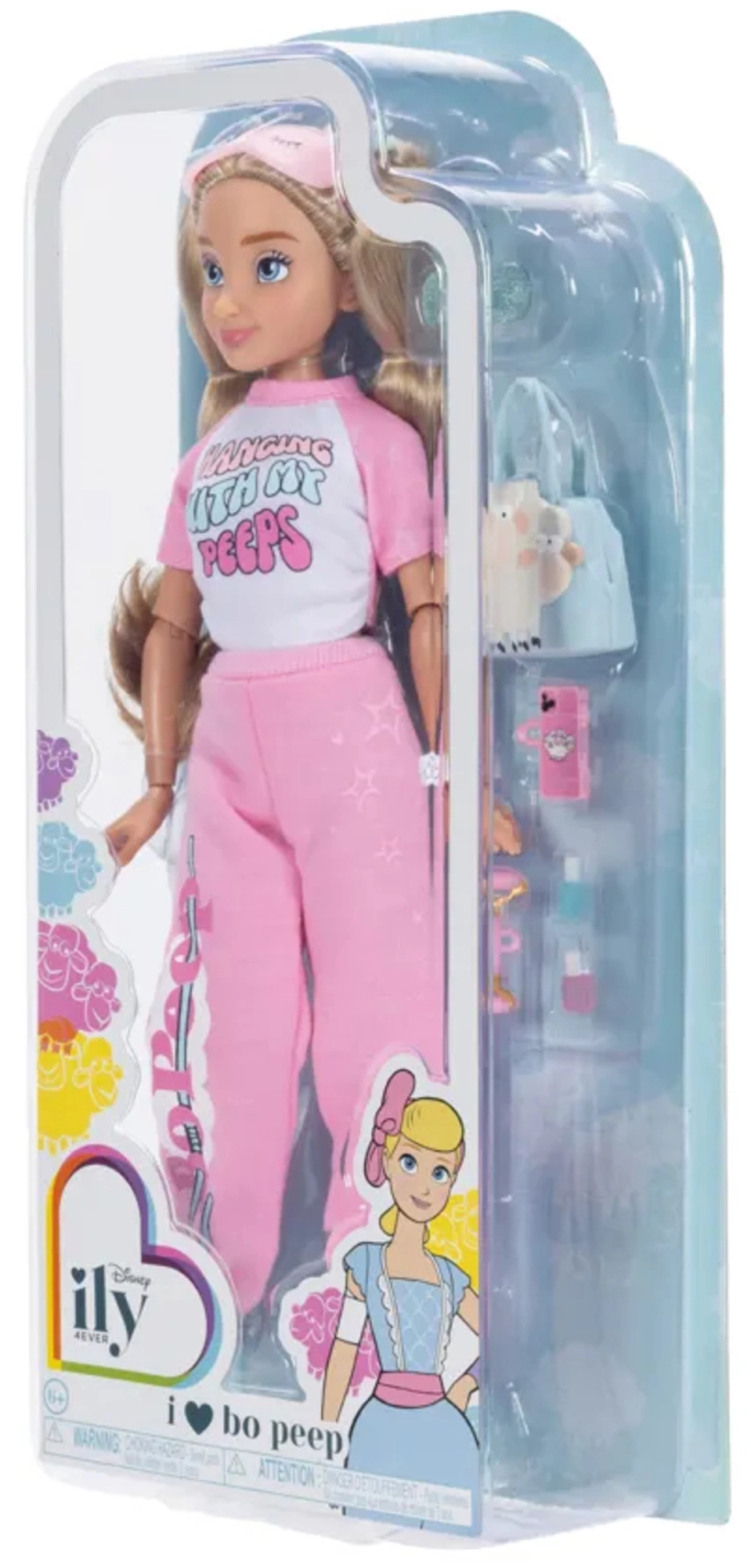 Descubre el mundo de la moda y la fantasía con la muñeca Disney ILY 4Ever inspirada en BO PEEP. La muñeca mide aproximadamente 30 cm, tiene 13 puntos de articulación para poses realistas y viste un moderno loungewear rosa con pantuflas azules. El amplio set de accesorios fomenta el juego creativo, el peinado y escenas de SPA relajantes.