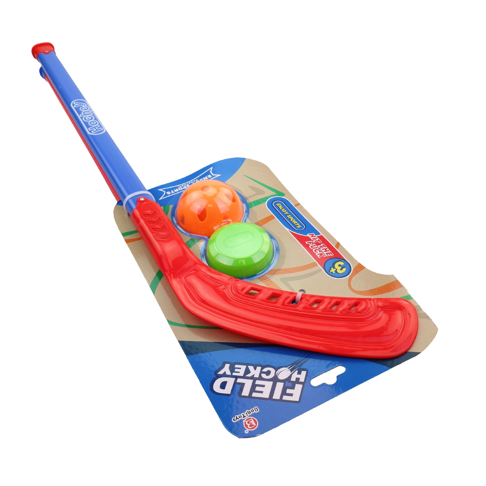 Divertido y resistente palo de hockey infantil con pelota y disco, ideal para pequeños jugadores a partir de 3 años. Fabricado en plástico de alta calidad para una larga vida útil, con longitud de 67 cm para un agarre cómodo y fácil manejo. Juego completo para jugar en casa y al aire libre que fomenta el desarrollo de la motricidad y la coordinación.