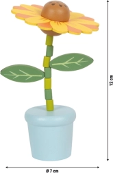 Una adorable flor danzante de madera en una macetita encantará a niños y adultos. Al presionar la parte inferior, la flor comienza a moverse suavemente: los tallos se ondulan y la flor se mece. Este juguete sencillo pero cautivador desarrolla la motricidad fina, la coordinación y la percepción del movimiento. Gracias a la madera robusta, la superficie lisa y el tamaño compacto, se adapta perfectamente a las manos pequeñas. El precio es por 1 unidad; hay 5 variantes de color, se envía al azar.
