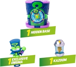 Vive la emoción y la aventura con el set de juego SuperThings – Base Secreta de Enigma, inspirado en la serie Kazoom Power. La base esconde pasajes secretos, elementos de seguridad y trampas ingeniosas que pondrán a prueba tu agudeza. Desbloquea el panel en el orden correcto y accede a la vital energía Kazoom antes de que la roben los villanos.
