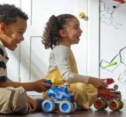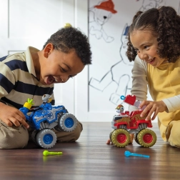 Cada coche cuenta con ruedas gigantes para una conducción fluida, lanzador activo con gancho y asiento para la figura. En el paquete también encontrarás proyectiles para escenas de juego llenas de acción. Los sets son compatibles con otros juguetes del mundo de PAW Patrol y encajan perfectamente en tu ciudad infantil.