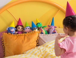 El diseño seguro con detalles bordados sin piezas pequeñas es ideal para los más pequeños. El tamaño compacto de 20 cm encaja perfectamente en las manos infantiles y cabe fácilmente en la mochila.