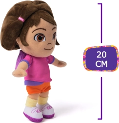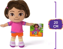Adorable muñeca de peluche de DORA the Explorer de 20 cm de altura, hecha de material muy suave y decorada con ojos bordados y una amplia sonrisa para un abrazo seguro. Con su típica camiseta rosa y shorts naranjas, encantará a todos los pequeños fans del popular dibujo animado. Ideal como primer peluche y compañera para jugar y dormir.