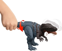 La cola giratoria activa un rugido aterrador y permite ataques potentes, mientras que la mandíbula que chasquea está sincronizada con el movimiento de las patas delanteras. Con el código de rastreador en la pierna, en la aplicación gratuita Jurassic World Play (Android/iOS) puedes desbloquear la realidad aumentada: crea una colección virtual de dinosaurios y compite en tierra, agua y aire.