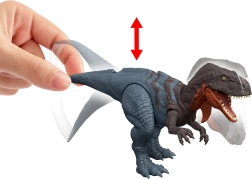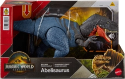 Adéntrate en el mundo de JURASSIC WORLD: Rebirth con la realista figura Abelisaurus de unos 25 cm de altura. El dinosaurio presenta una constitución musculosa y atlética, una coloración azul oscuro‑negra y una textura de escamas destacada, desde las finas del vientre hasta las placas marcadas del lomo y la cabeza. Gracias a los efectos sonoros y mecánicos, la acción resulta aún más realista.