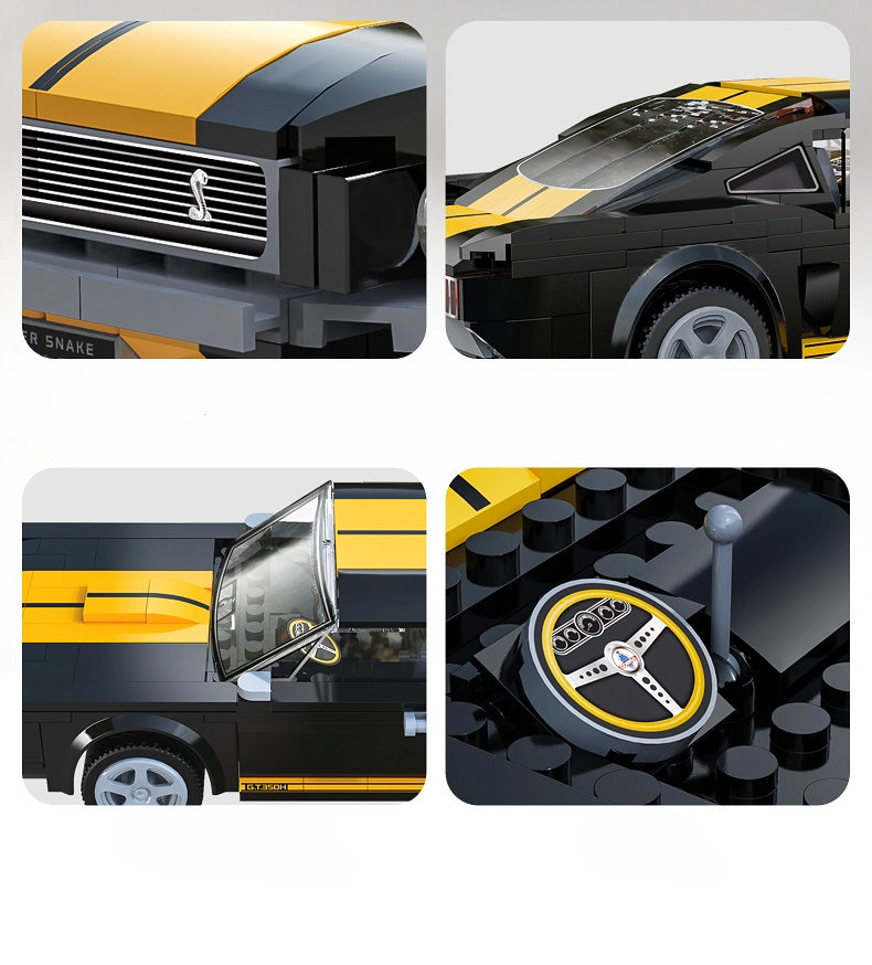Este juego de construcción CaDA ofrece un modelo fiel del SHELBY GT350H en una elegante combinación negro‑dorado. Una vez montado, el vehículo mide aproximadamente 21,2 × 9,3 × 6,5 cm, alcanza una velocidad de hasta 3,8 km/h y, gracias al capó abatible, permite ver el detallado motor V8. Las decoraciones impresas garantizan durabilidad y un aspecto premium sin necesidad de pegatinas.