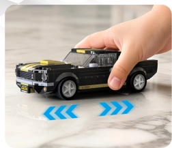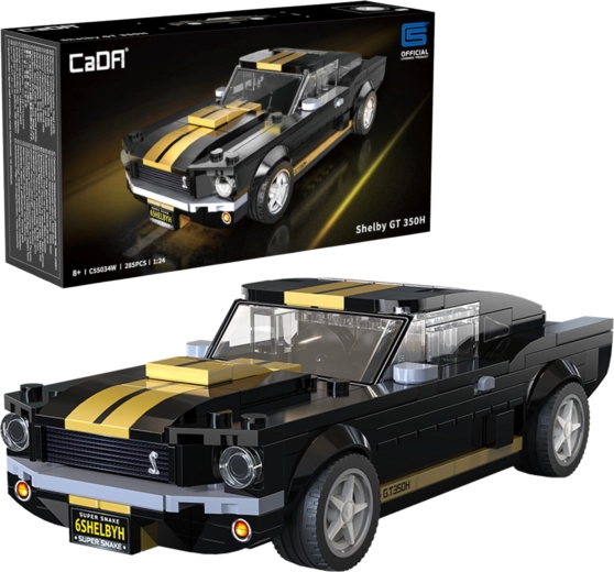 Disfruta de una construcción precisa y del aspecto auténtico del legendario SHELBY GT350H con licencia. El modelo destaca por su pintura negro‑dorada, franjas de competición, toma de aire en el capó y cabina detallada. Gracias a las piezas impresas sin pegatinas, el modelo luce limpio y resistente incluso tras mucho tiempo en exhibición.