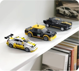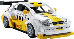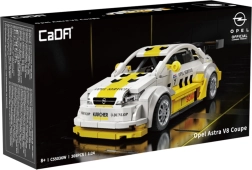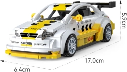 Este modelo con licencia del OPEL ASTRA V8 Coupé de la legendaria serie DTM ofrece una carrocería meticulosamente detallada en la típica combinación amarillo-blanco con logotipos de patrocinadores (p. ej., Dunlop, Kärcher, Sonax). Una vez montado, mide 17 × 5,9 × 6,4 cm, por lo que destaca en la estantería y a la vez ofrece una experiencia de construcción agradable.
