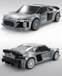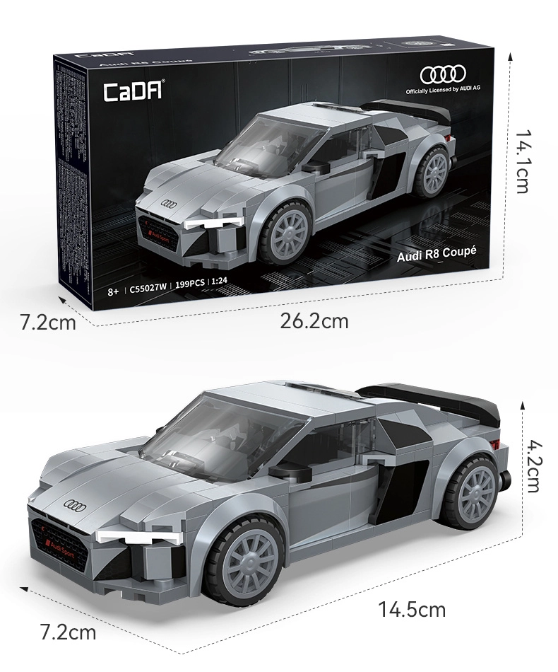 Este set con licencia de CaDA reproduce fielmente las líneas agresivas del deportivo AUDI R8 Coupé (2019). Gracias a las piezas de calidad y a las impresiones precisas sin pegatinas, destacan el frontal realista con rejilla negra, las dobles tomas de aire y los laterales de líneas limpias. Una vez montado, el modelo mide aproximadamente 14,5 × 7,2 × 4,2 cm y luce de maravilla en una estantería o escritorio.