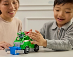 El vehículo verde se desplaza suavemente sobre superficies planas. Los niños pueden empujarlo y contar sus propias historias del mundo de Paw Patrol.