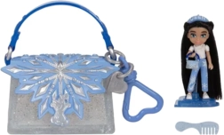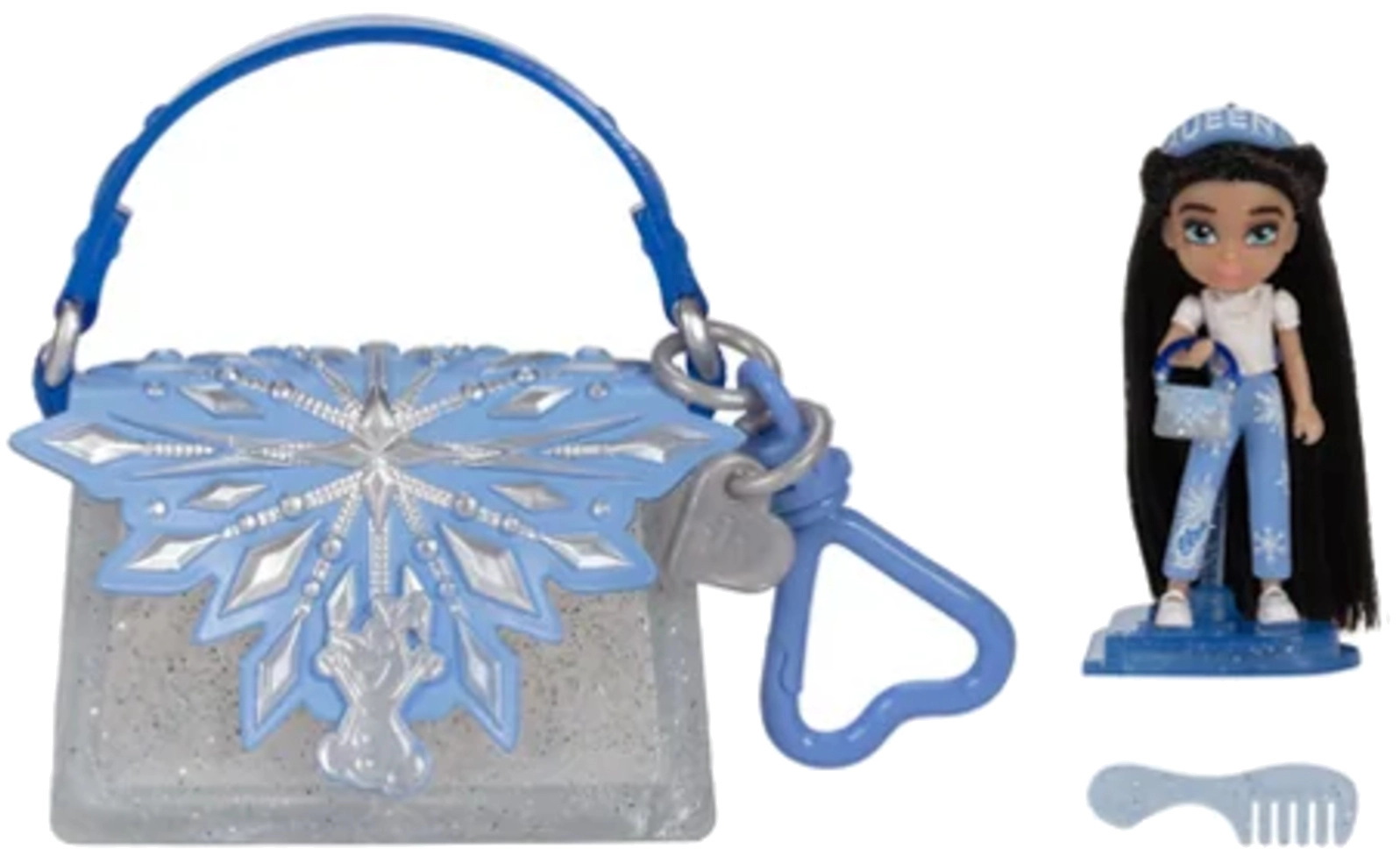 Esta mini muñeca de moda de la colección Disney ILY 4Ever Tote Teenies une el mundo de la moda y la fantasía. Tiene el pelo largo y oscuro, viste un conjunto azul y blanco con motivo de copos de nieve y se completa con zapatillas deportivas y un mini bolso con copo de nieve. Ideal para pequeños amantes del mundo Disney y coleccionistas.
