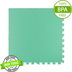 Seguridad, confort y estilo en uno. La alfombrilla HUMBI con un grosor de 1 cm amortigua muy bien las caídas y protege del frío del suelo. El color menta, neutro y discreto, encaja con elegancia en cualquier interior. Las piezas de 60 × 60 cm se unen fácilmente para crear una superficie más grande: ideal para el salón, el dormitorio infantil o la sala de juegos.