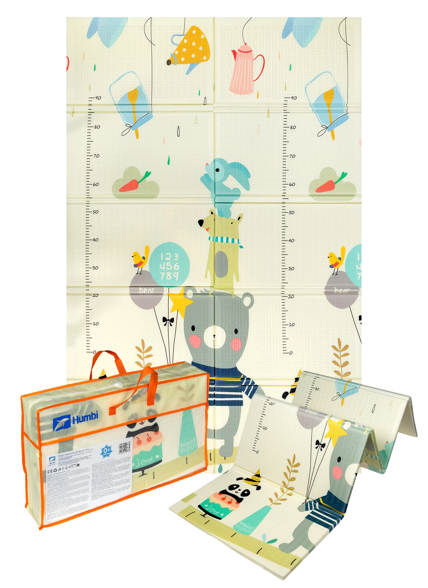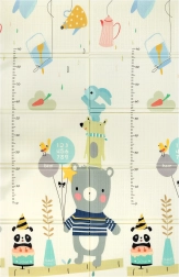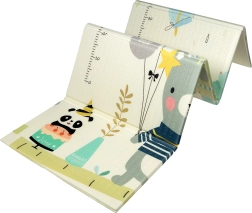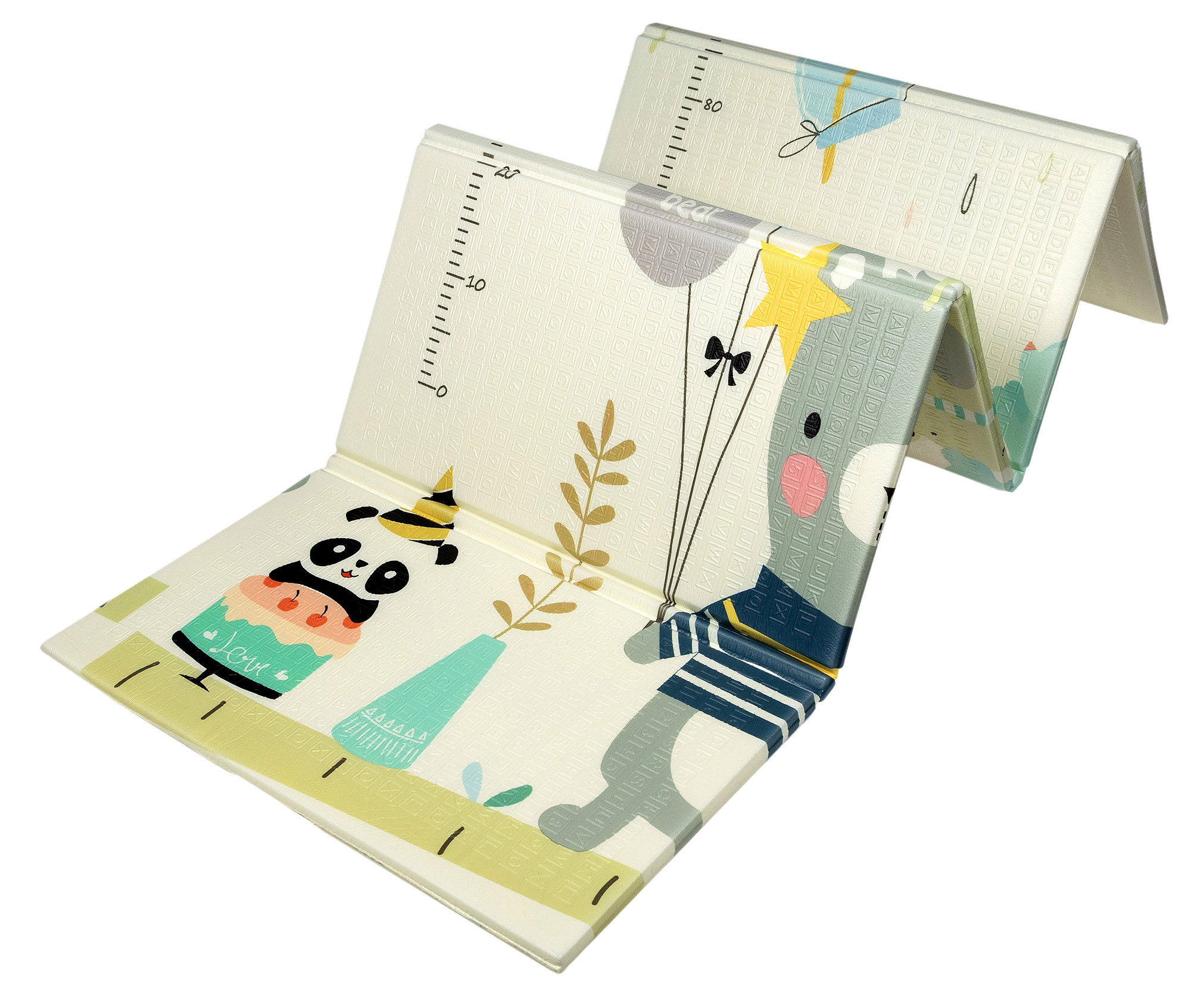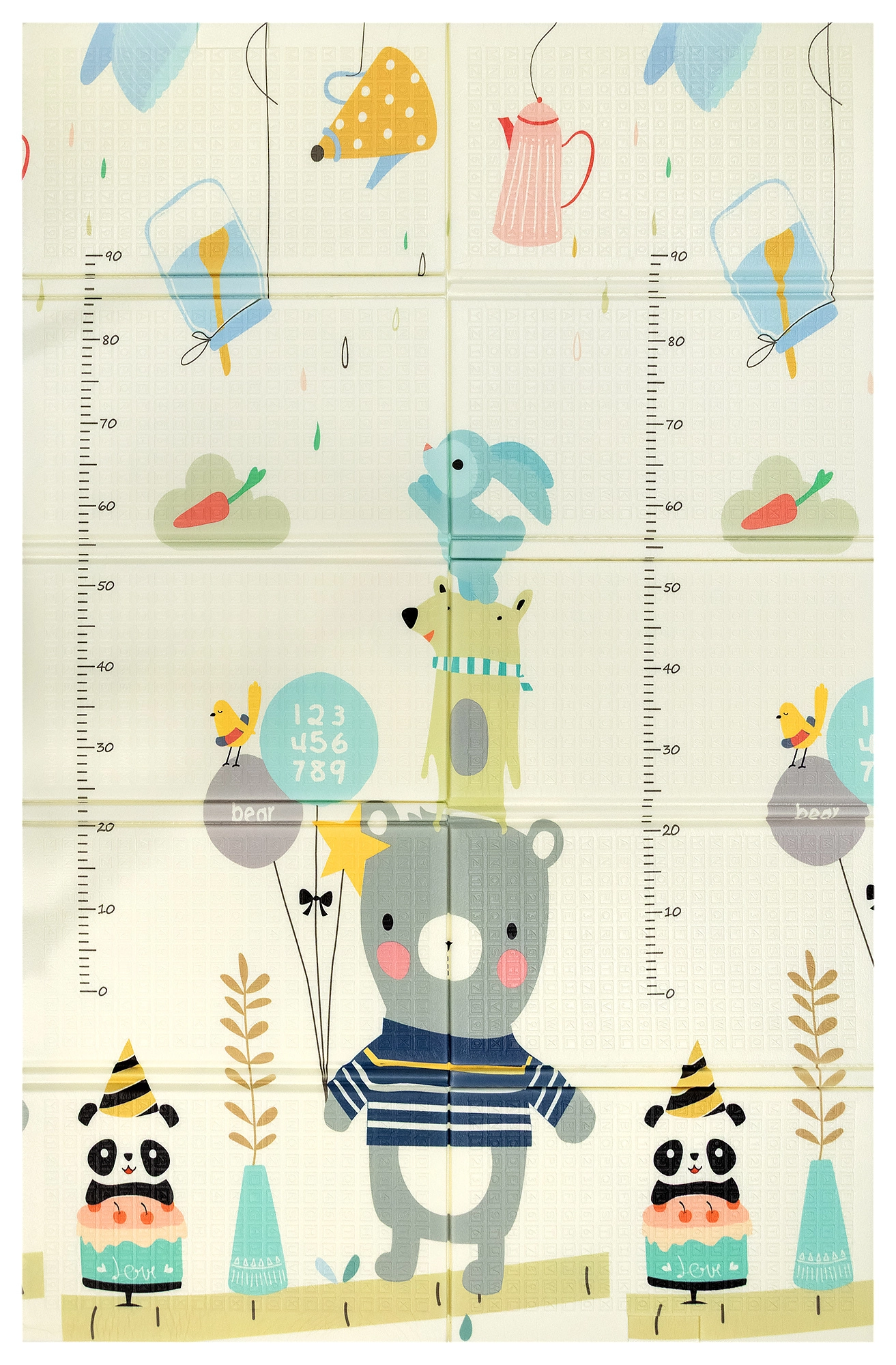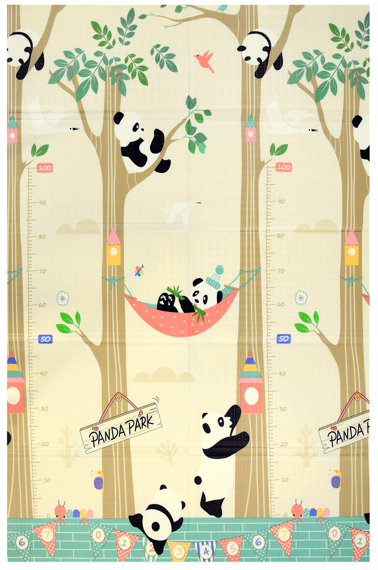 Descubre una alfombra versátil que crece con tu hijo desde los primeros días de vida. Gracias a su grosor de 1 cm, aísla del frío y amortigua los impactos, por lo que es ideal para jugar con seguridad, gatear y dar los primeros pasos. El diseño de doble cara ofrece por un lado adorables pandas y por el otro animalitos con números y un medidor de crecimiento, lo que favorece el desarrollo y el aprendizaje temprano.