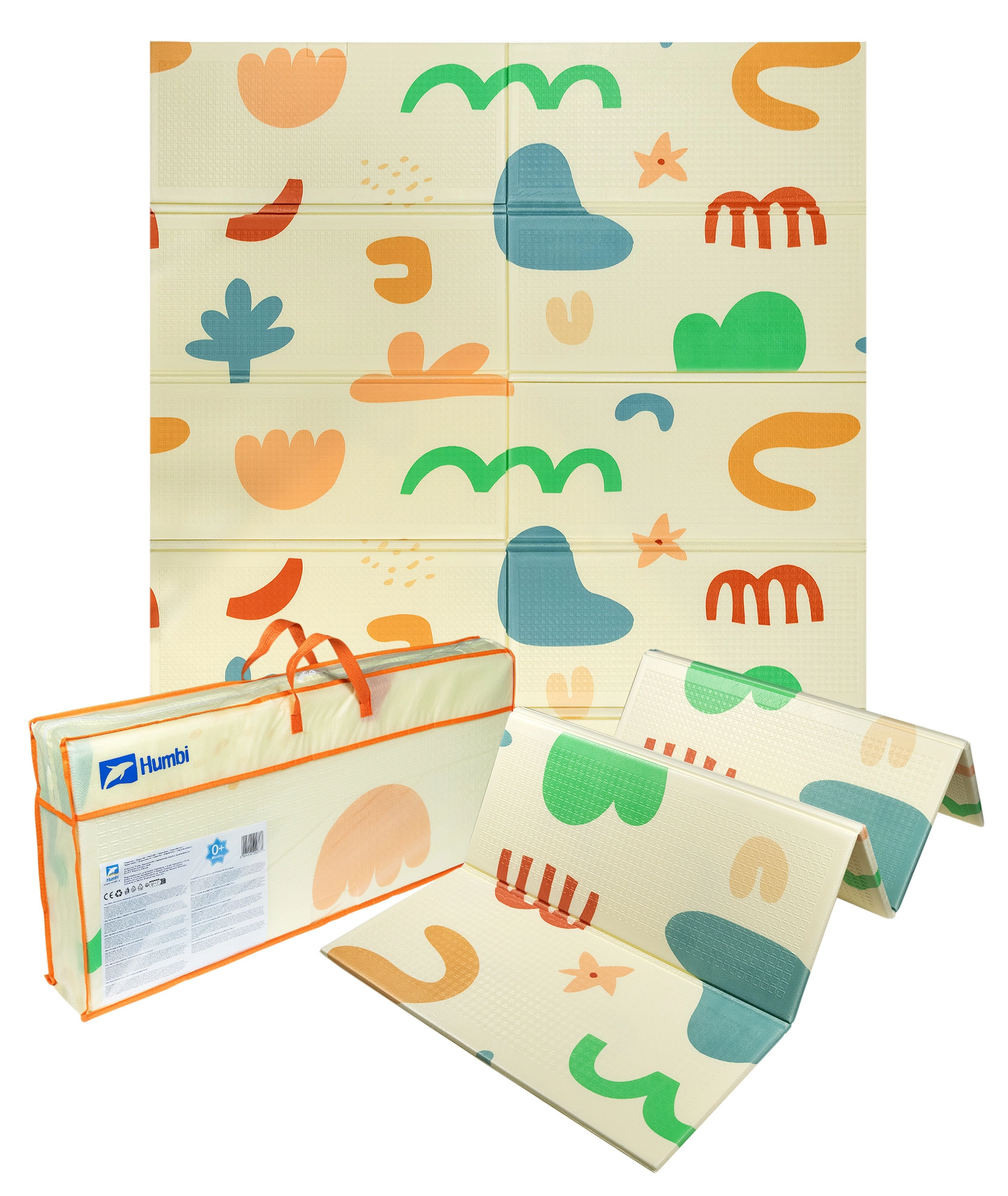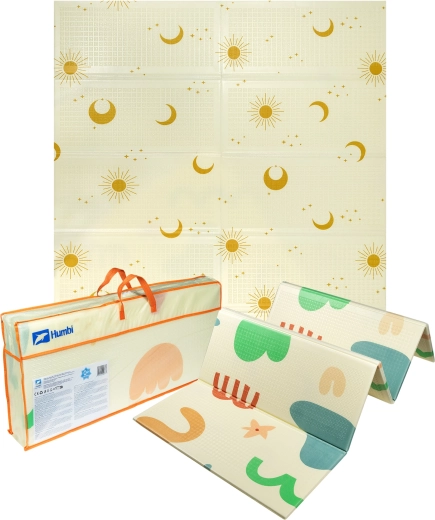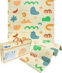 Gran, suave y reversible alfombra de espuma de material XPE que ofrece a los niños desde el nacimiento un espacio seguro y cómodo para jugar, gatear y dar sus primeros pasos. Es plegable, ligera, impermeable y fácil de limpiar, e incluye una práctica bolsa de transporte. Cumple las normas EN71 y cuenta con certificación CE; no contiene ftalatos, formamida, BPA ni PVC.