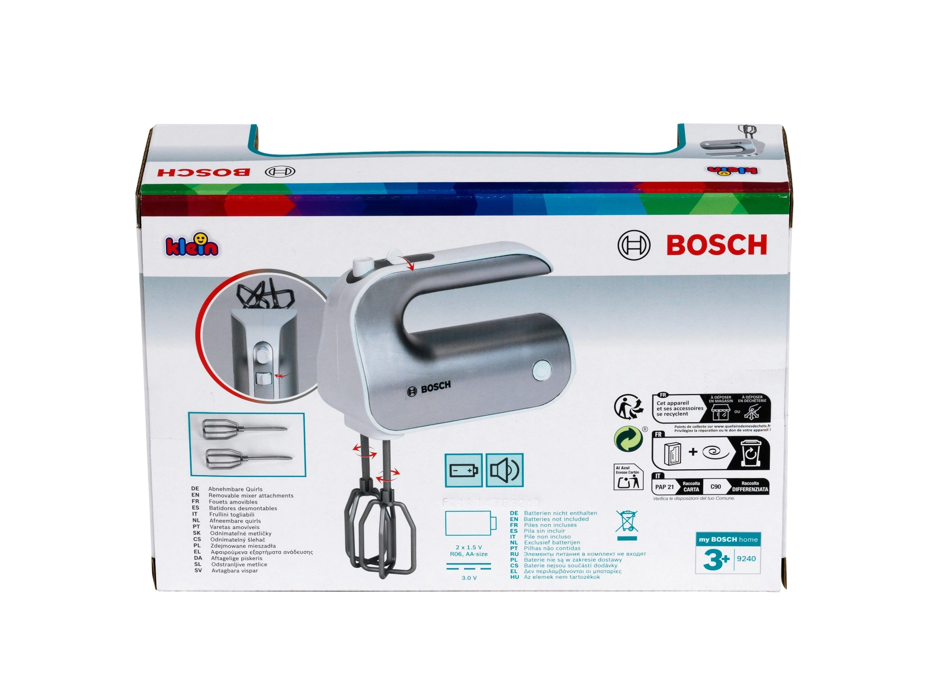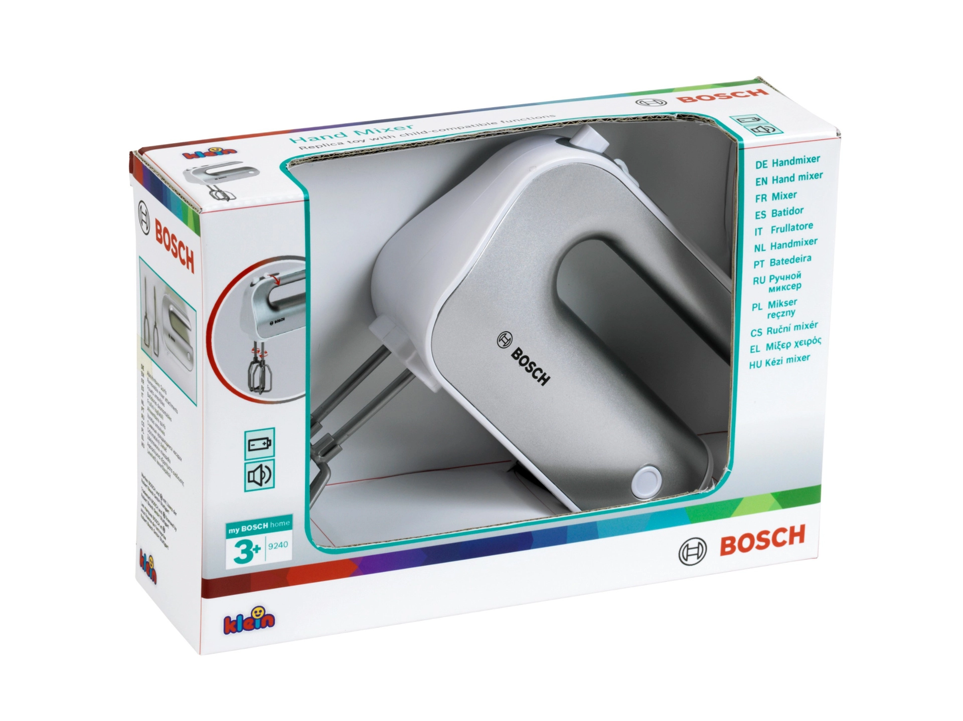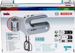 Brinda a los niños diversión como en una cocina de verdad. La batidora con licencia BOSCH en acabado plateado reproduce fielmente un electrodoméstico real: al pulsar el botón, las varillas giran y el selector deslizante simula el ajuste de velocidad. Gracias a los accesorios desmontables, los niños también adquieren hábitos de orden y cuidado.