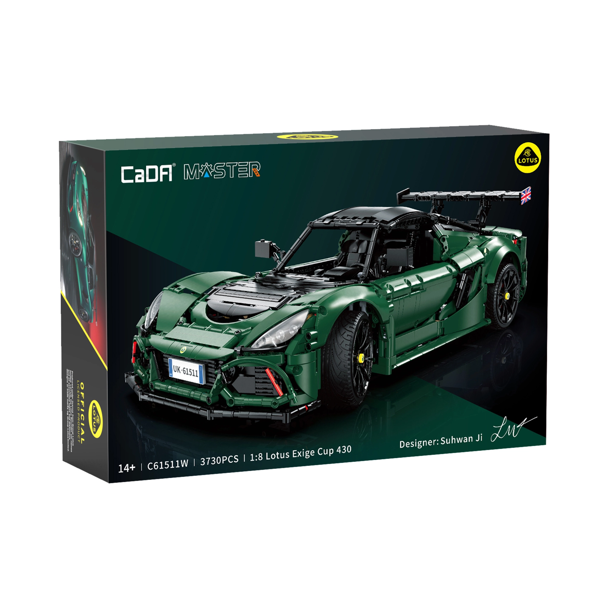 Construye el icónico coche LOTUS Exige Cup 430 a escala 1:8 con 3730 piezas. El set CaDA de la línea Master ofrece puertas, capó, maletero y techo abatibles, un interior detallado, dirección funcional y suspensión operativa. La carrocería en verde oscuro y los detalles precisos lo convierten en un magnífico modelo de coleccionista y un reto para constructores experimentados.