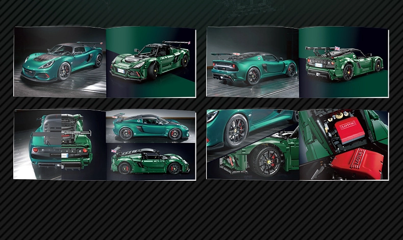 Este modelo de coche deportivo de gran formato ofrece una experiencia de construcción inmersiva y un resultado impactante para exhibir. Con funciones mecánicas detalladas —desde paneles abatibles hasta dirección funcional y suspensión— disfrutarás no solo del montaje, sino también de la presentación interactiva del modelo terminado. Las proporciones realistas y el perfil aerodinámico en verde oscuro rinden fiel homenaje al LOTUS Exige Cup 430 original.