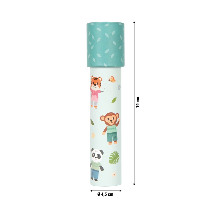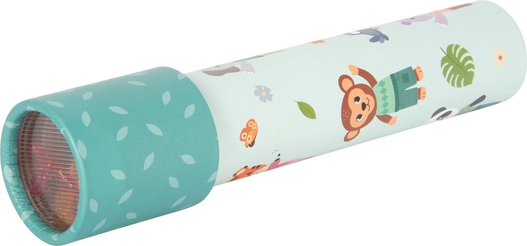 El Caleidoscopio Amigos de la Jungla SMALL FOOT encantará a los niños a partir de 3 años con un diseño lúdico que incluye tigre, elefante, mono, cebra, panda e hipopótamo. Con cada giro aparecen nuevos y patrones geométricos que estimulan la imaginación y ayudan a reconocer colores y formas.