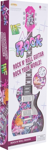 ¡Organiza conciertos en casa con esta guitarra eléctrica infantil rosa! Ofrece control de volumen, ritmos variados, efectos de sonido y 8 melodías preestablecidas. Una opción ideal para pequeños músicos a partir de 3 años que favorece el desarrollo del ritmo y la motricidad fina. Incluye correa para tocar cómodamente de pie.