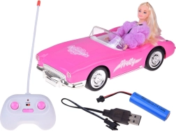 El estiloso cabrio retro rosa con una muñeca elegante ofrece diversión con control remoto, efectos de luz y sonido y un rico conjunto de accesorios. A los niños les encantará el cabriolet con detalles cromados, la posibilidad de conducir hacia adelante/atrás y girar, así como la batería recargable con carga por USB.