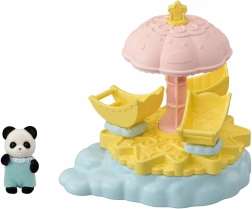 El set incluye una adorable figurita de panda bebé con extremidades articuladas, que puede sentarse fácilmente en los asientos o colocarse en distintas posiciones. Las compactas dimensiones del carrusel (aprox. 15 × 14 × 12 cm) encajan a la perfección en cualquier habitación infantil y con otros sets de Sylvanian Families.