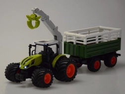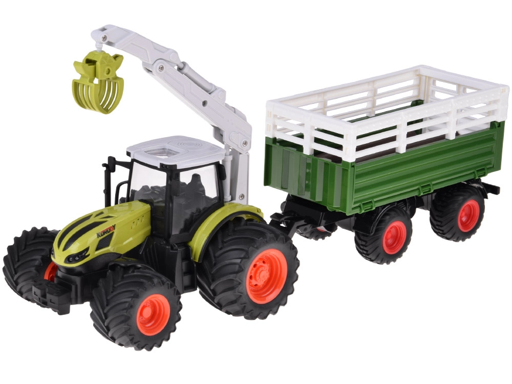 El mando a 2,4 GHz garantiza un control estable sin interferencias, incluye modo DEMO y la opción de encender/apagar las luces. El remolque es desmontable, con caja volcable y laterales y portón trasero abatibles para facilitar la carga. En el paquete encontrarás todo lo necesario, incluida la batería recargable y el cable USB; solo hay que poner pilas en el mando y ¡salir a la granja!
