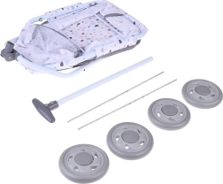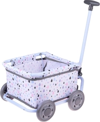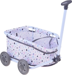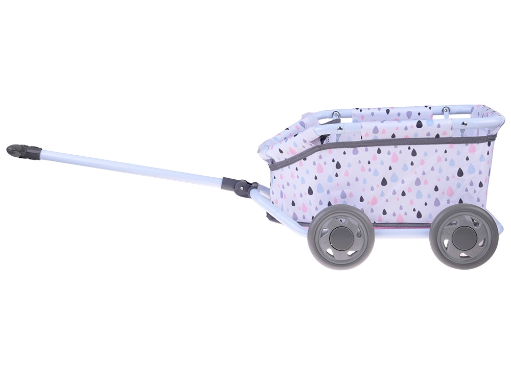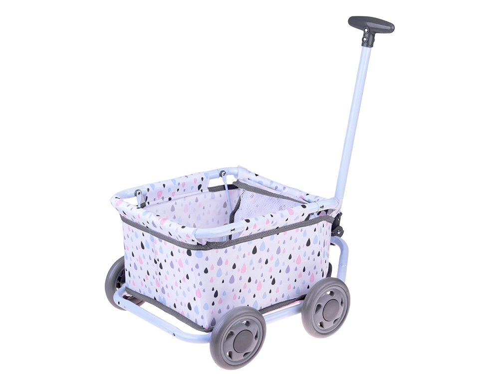Este carrito con estampado pastel de gotas es ideal para el juego diario, paseos por casa y en el jardín. La ligera estructura metálica y la cesta textil suave ofrecen un espacio cómodo para la muñeca, el peluche y pequeños accesorios.