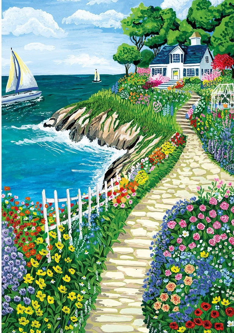 Descubre una triada de ilustraciones evocadoras con atmósfera marina: un faro, jardines en flor y una pintoresca costa. Cada rompecabezas mide aproximadamente 34 × 48 cm montado, un formato ideal tanto para un montaje cómodo como para enmarcar. La calidad prémium de GIBSONS garantiza cortes precisos, colores intensos y cartón resistente.